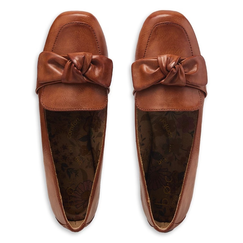 Мокасины с бантом и широким носом в пэйсли B.O.C., dark tan