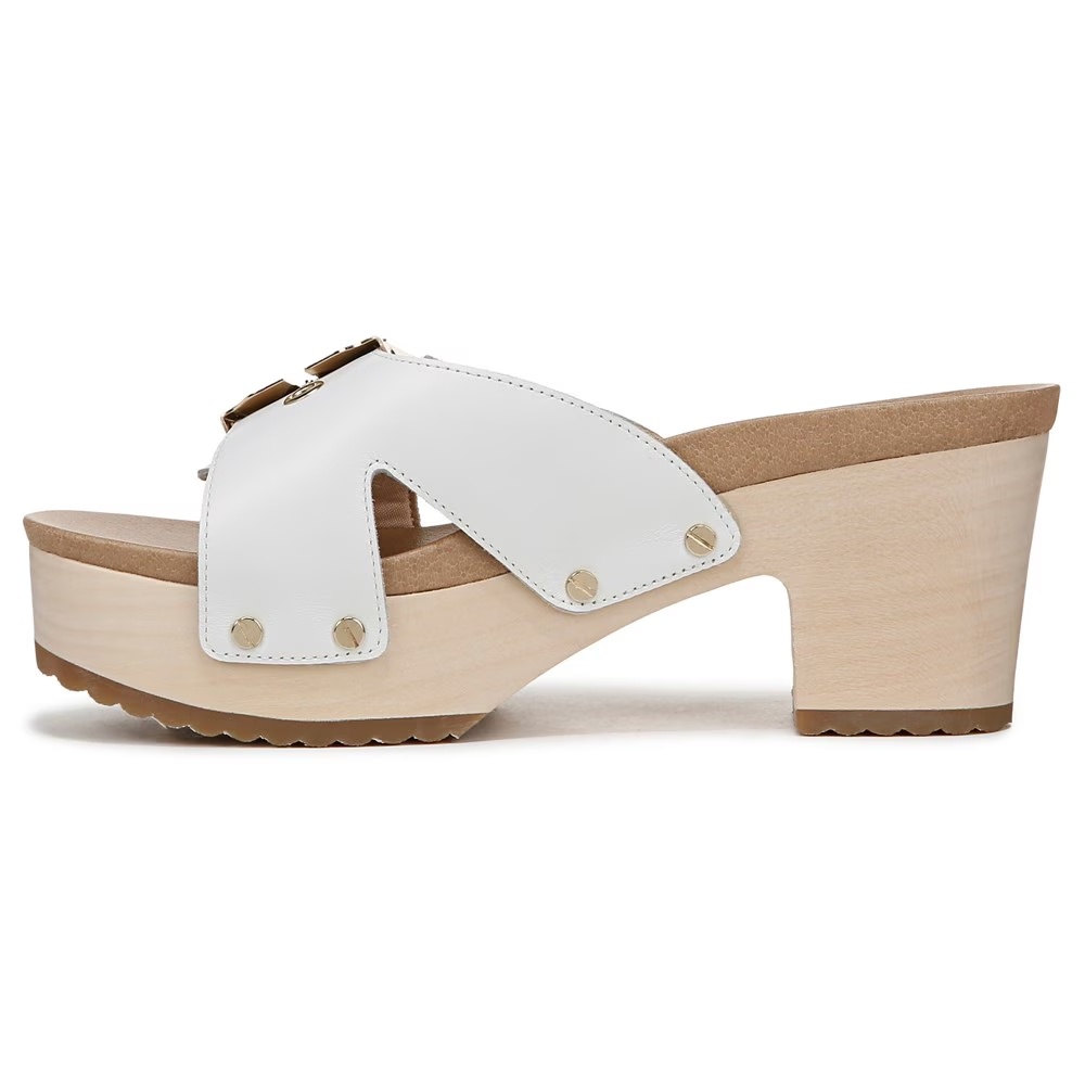Ретро-слайды для женщин с деревянным каблуком-башмаком и толстой формованной стелькой для дополнительного комфорта.