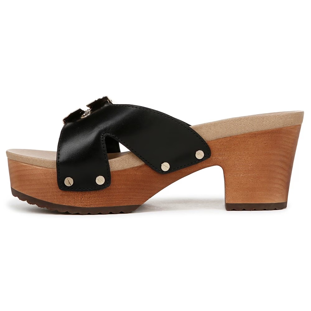 Ретро-слайды для женщин с деревянным каблуком-башмаком и толстой формованной стелькой для дополнительного комфорта.