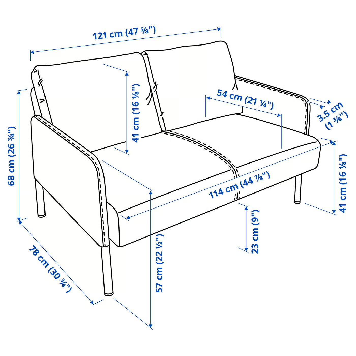 Ширина сиденья, диван: 58 см.