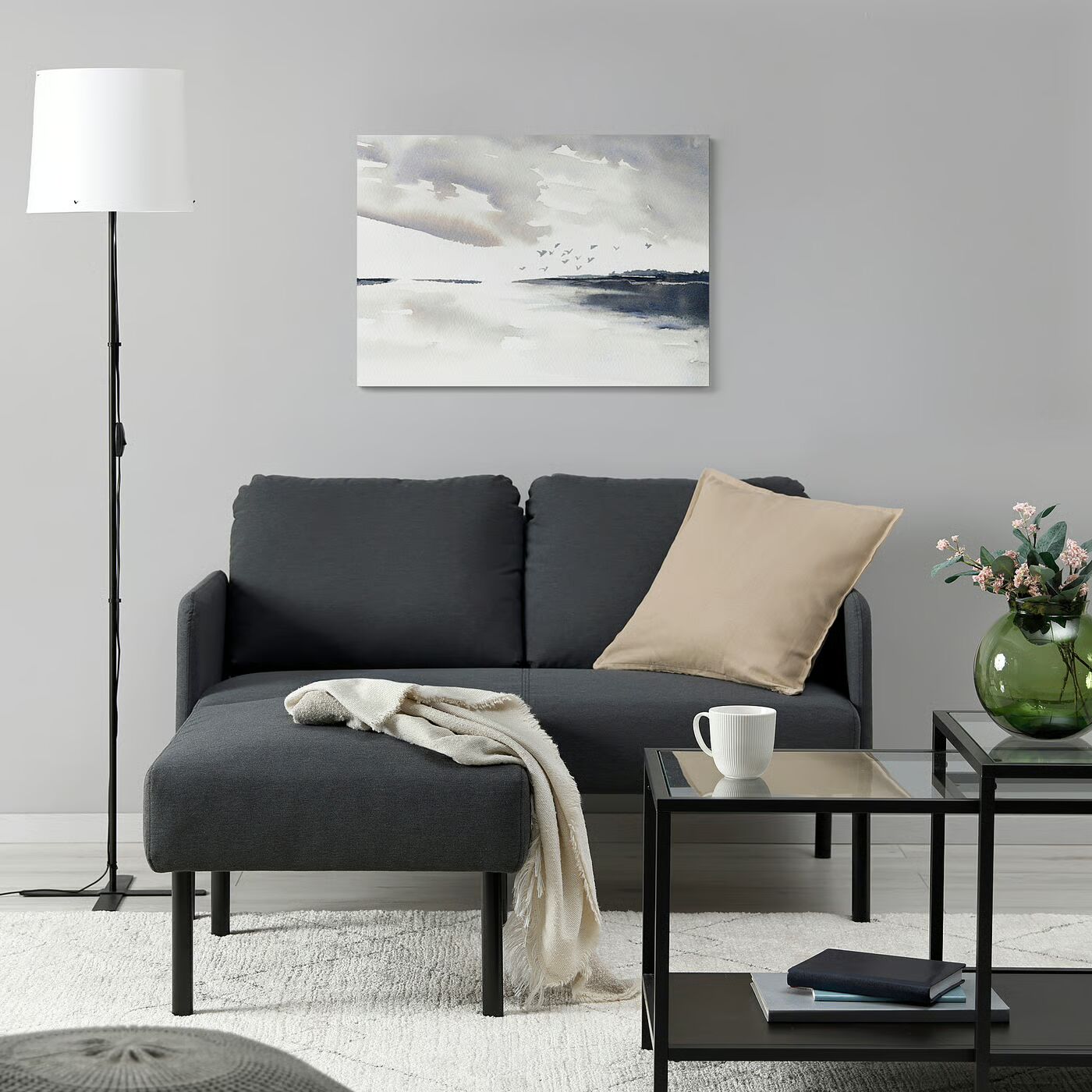 Простой диван GLOSTAD также удобен: у него толстое сиденье, мягкие подлокотники и мягкие подушки для спины, которые остаются на месте.