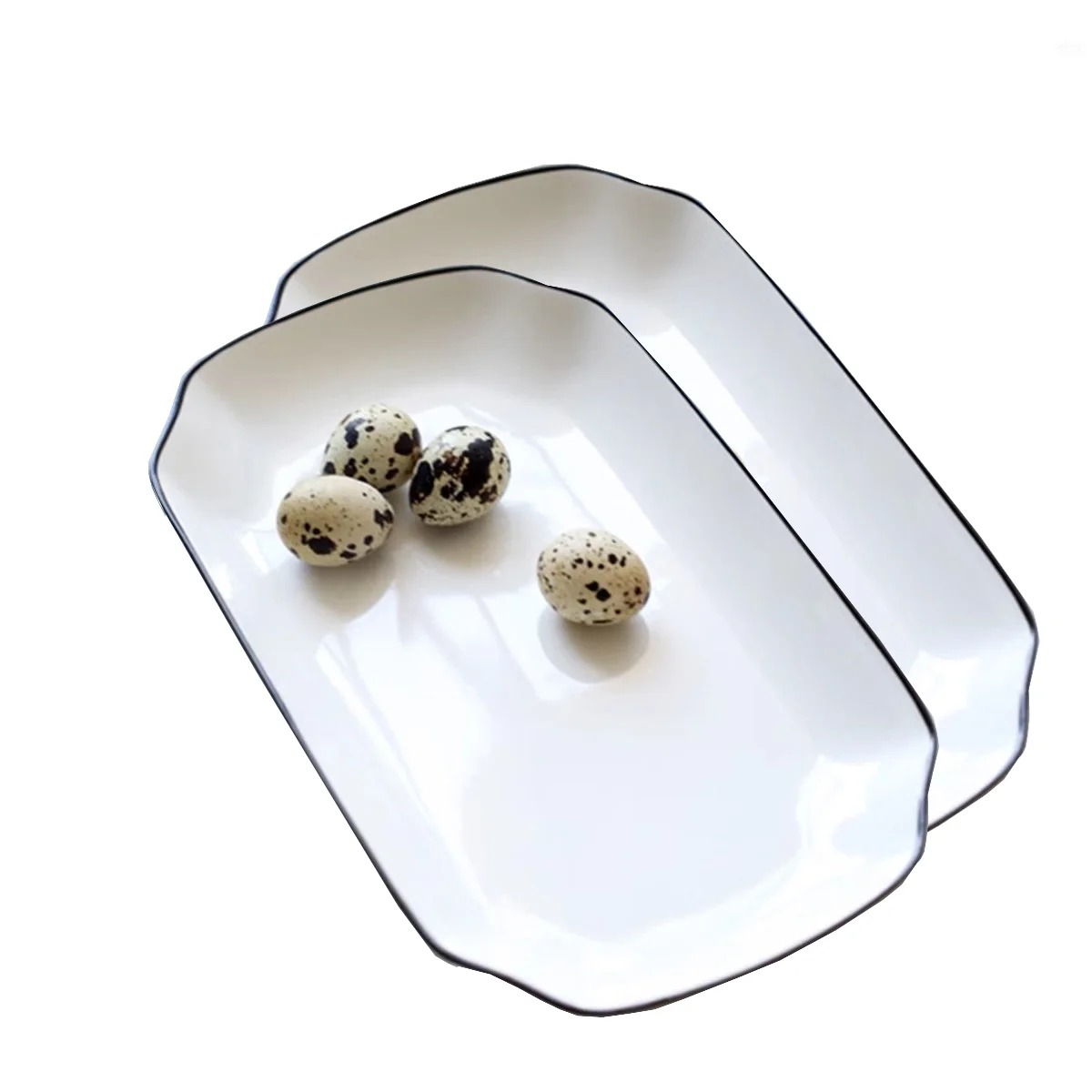 Посуда выполнена в минималистичном стиле с черной окантовкой, что придает ей современный вид.