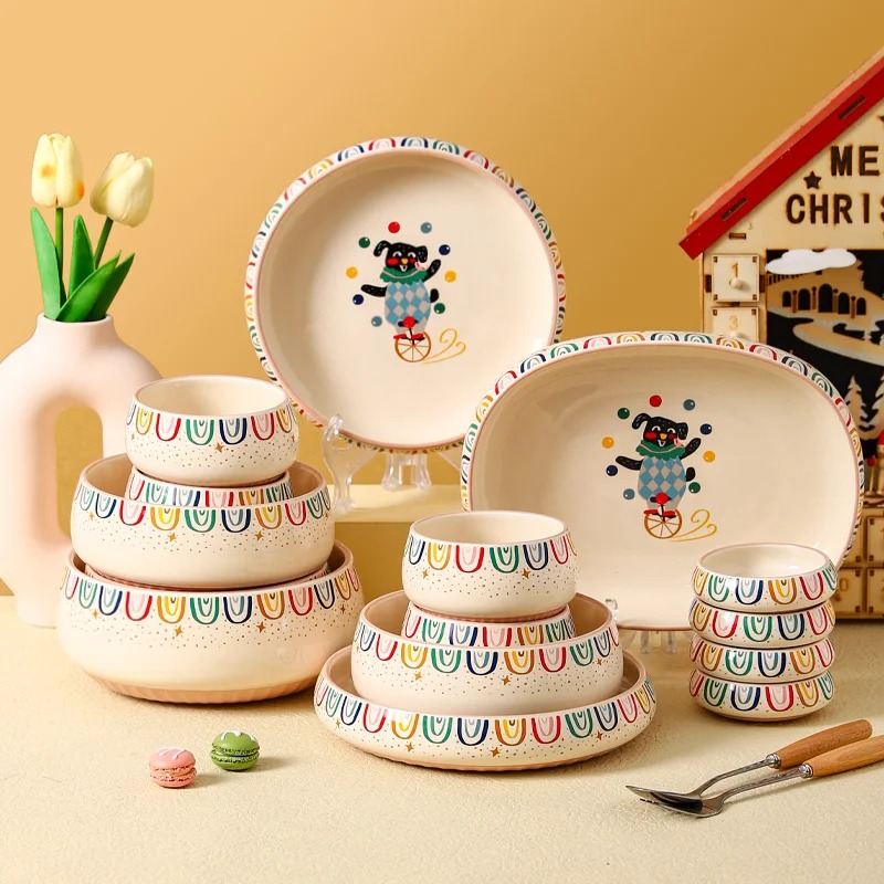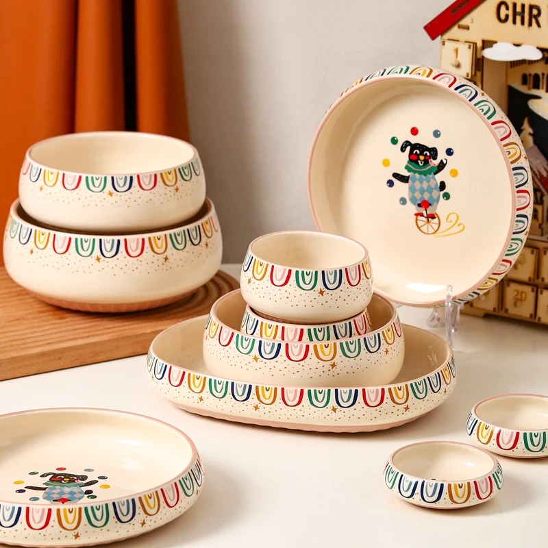 Керамические тарелки с ярким декором, подходящие для сервировки стола.