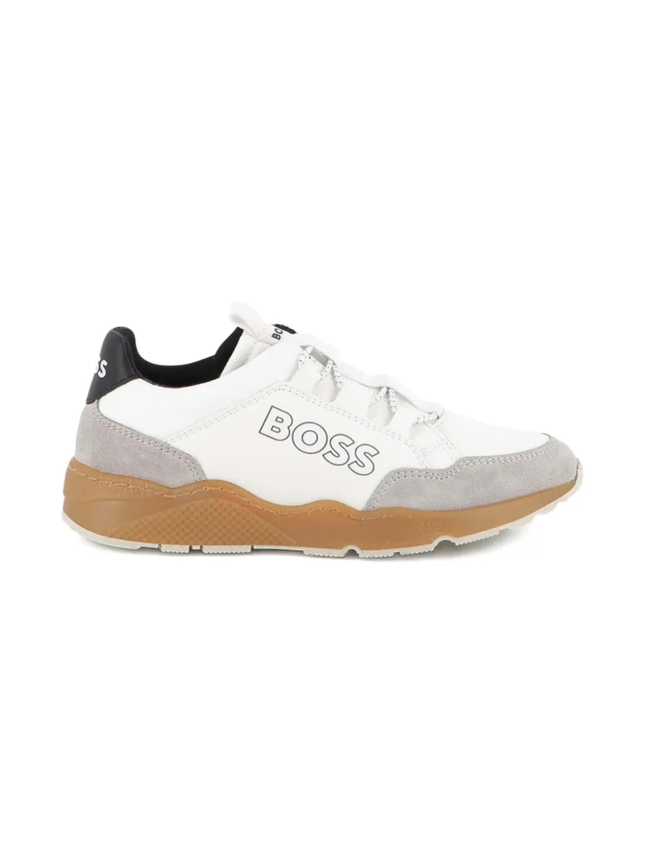 Кроссовки со шнуровкой и вставками BOSS Kidswear, белый