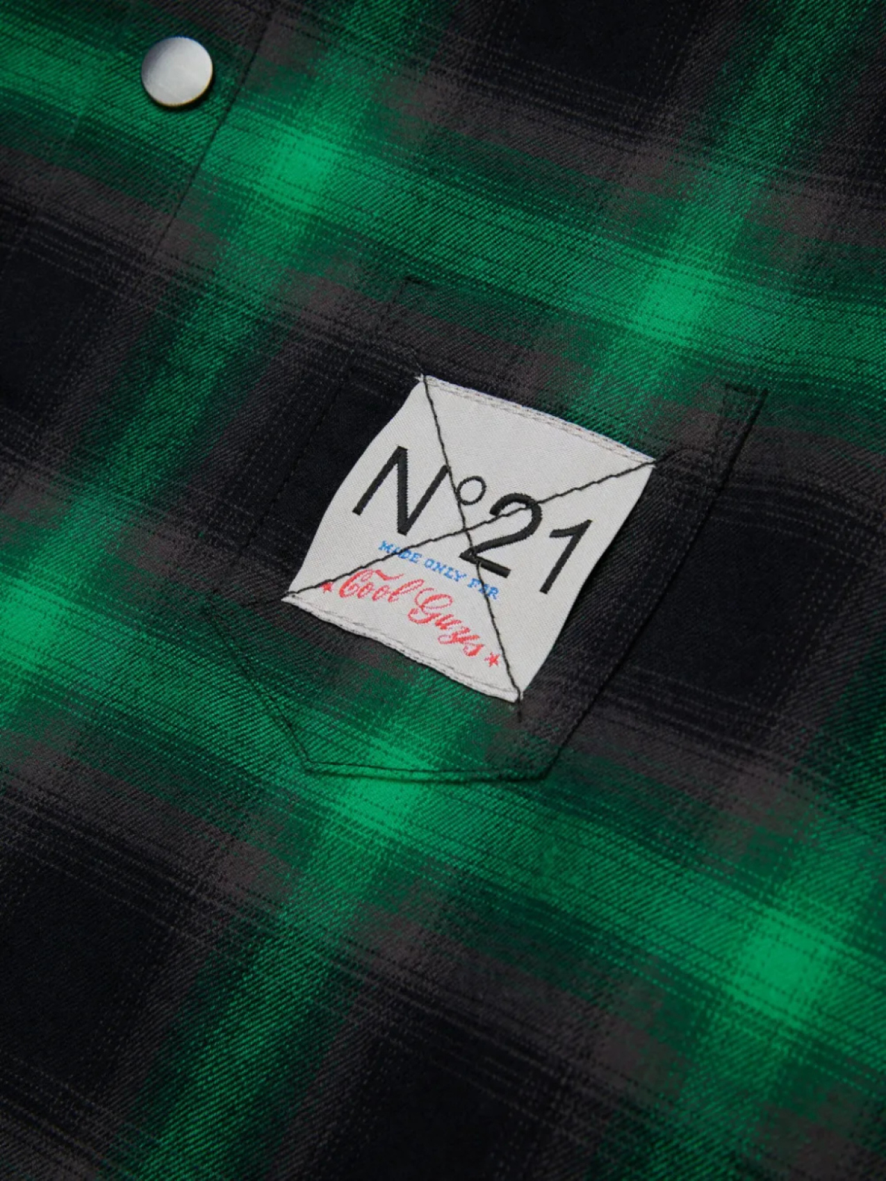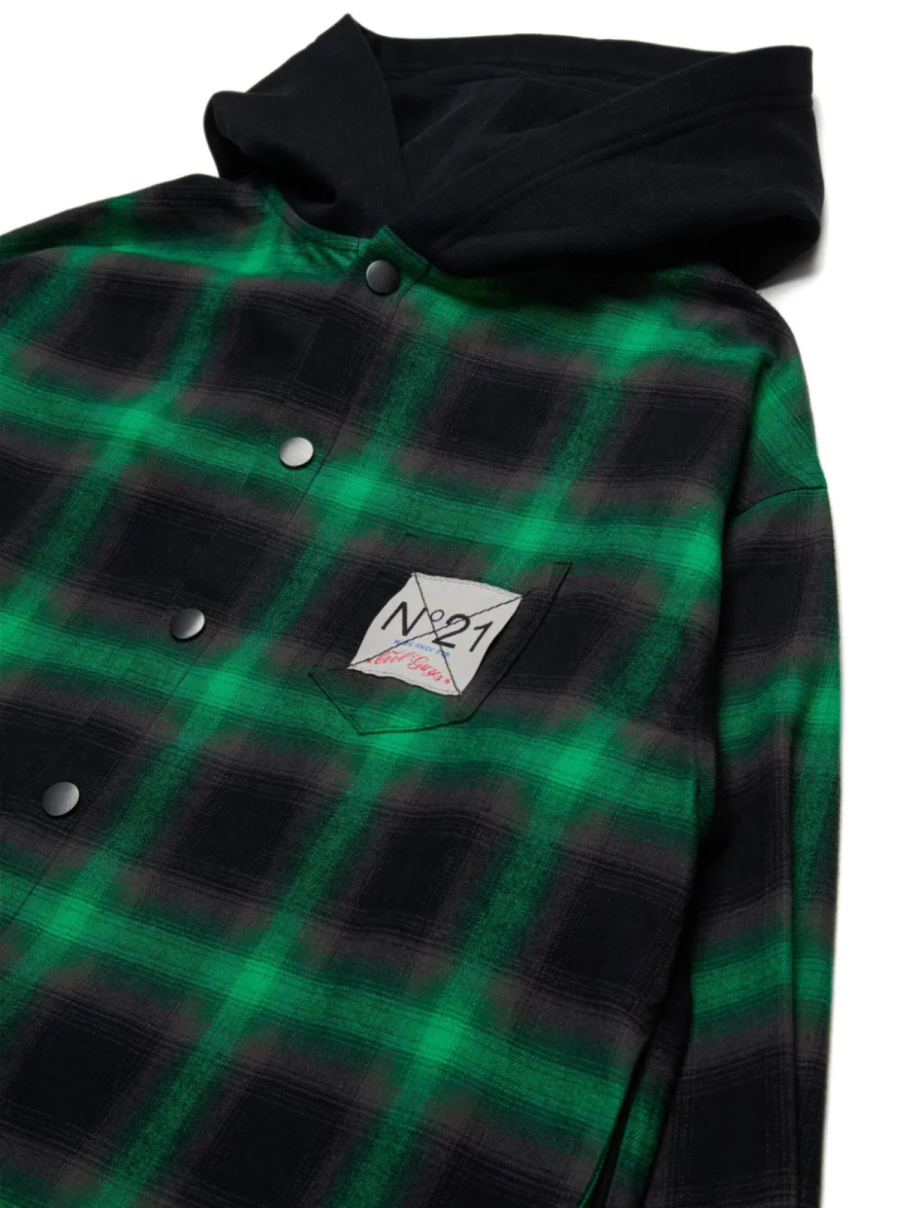 Nº21 Kids клетчатая рубашка с капюшоном, зеленый