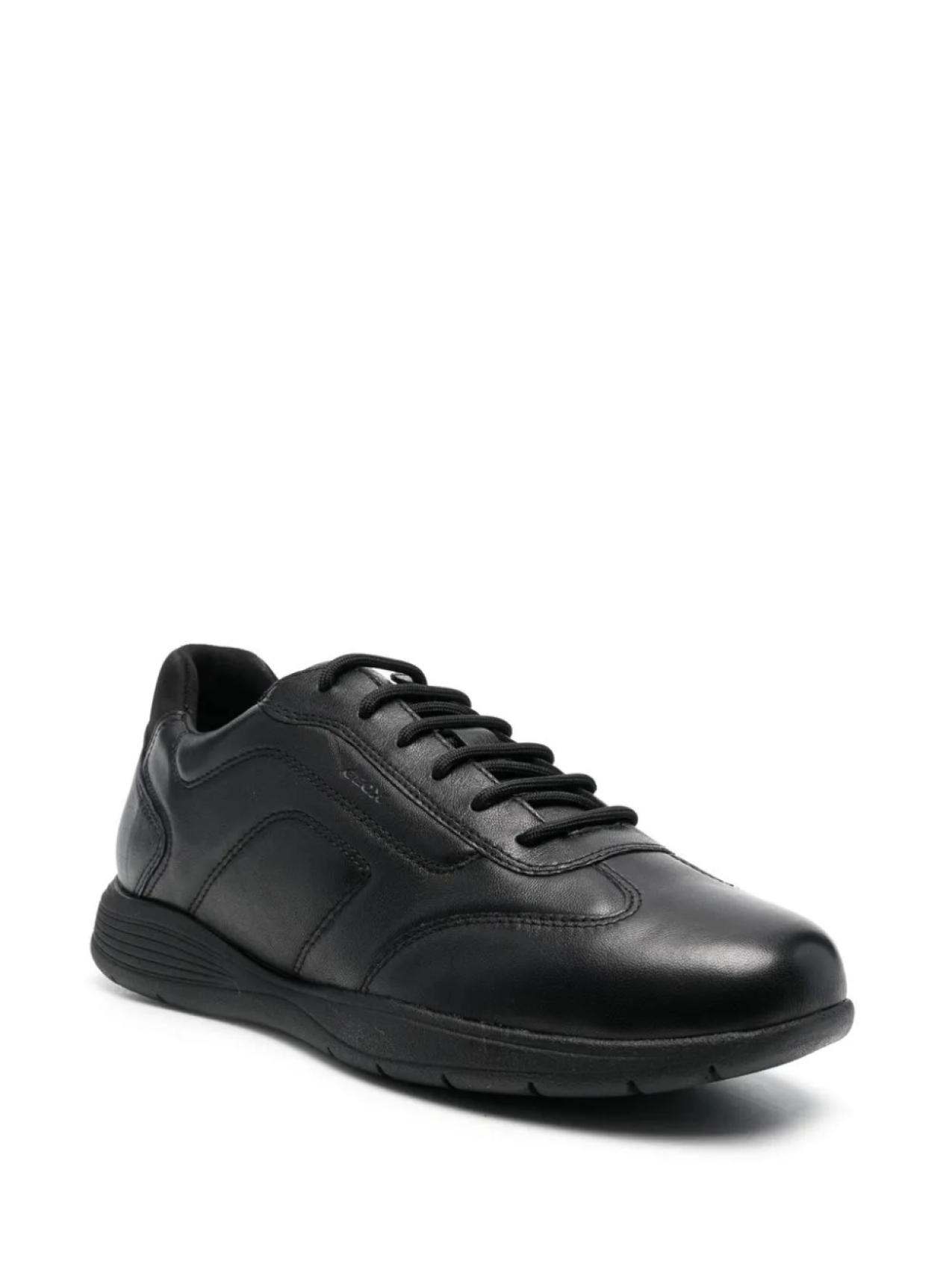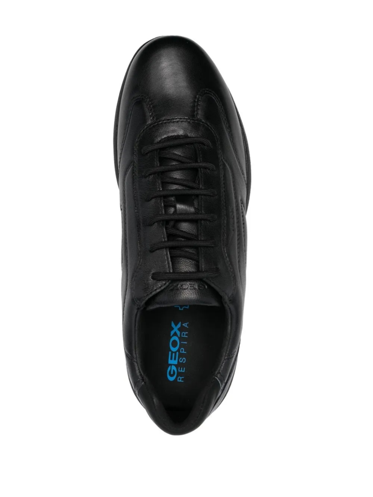 Черный, телячья кожа, вставки, шнуровка спереди и плоская резиновая подошва.