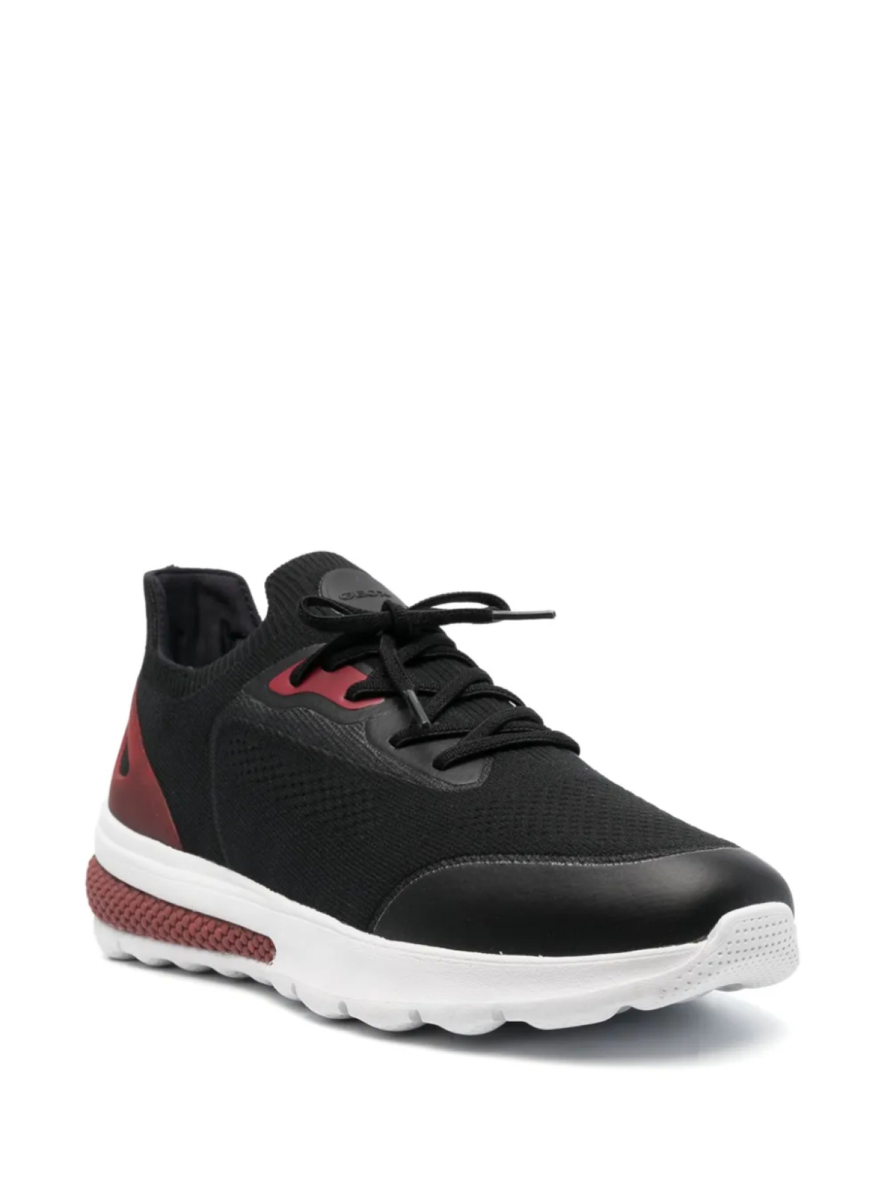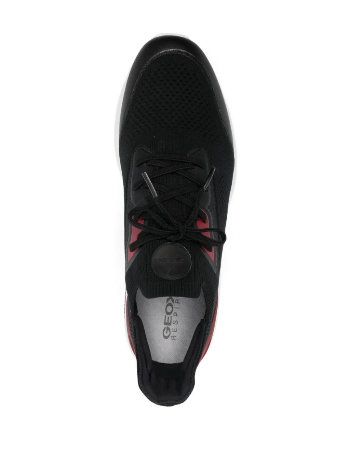 Черный/белый, красный, вставки, перфорация, шнуровка спереди, нашивка с логотипом на язычке, закругленный носок, стелька с логотипом и плоская резиновая подошва.