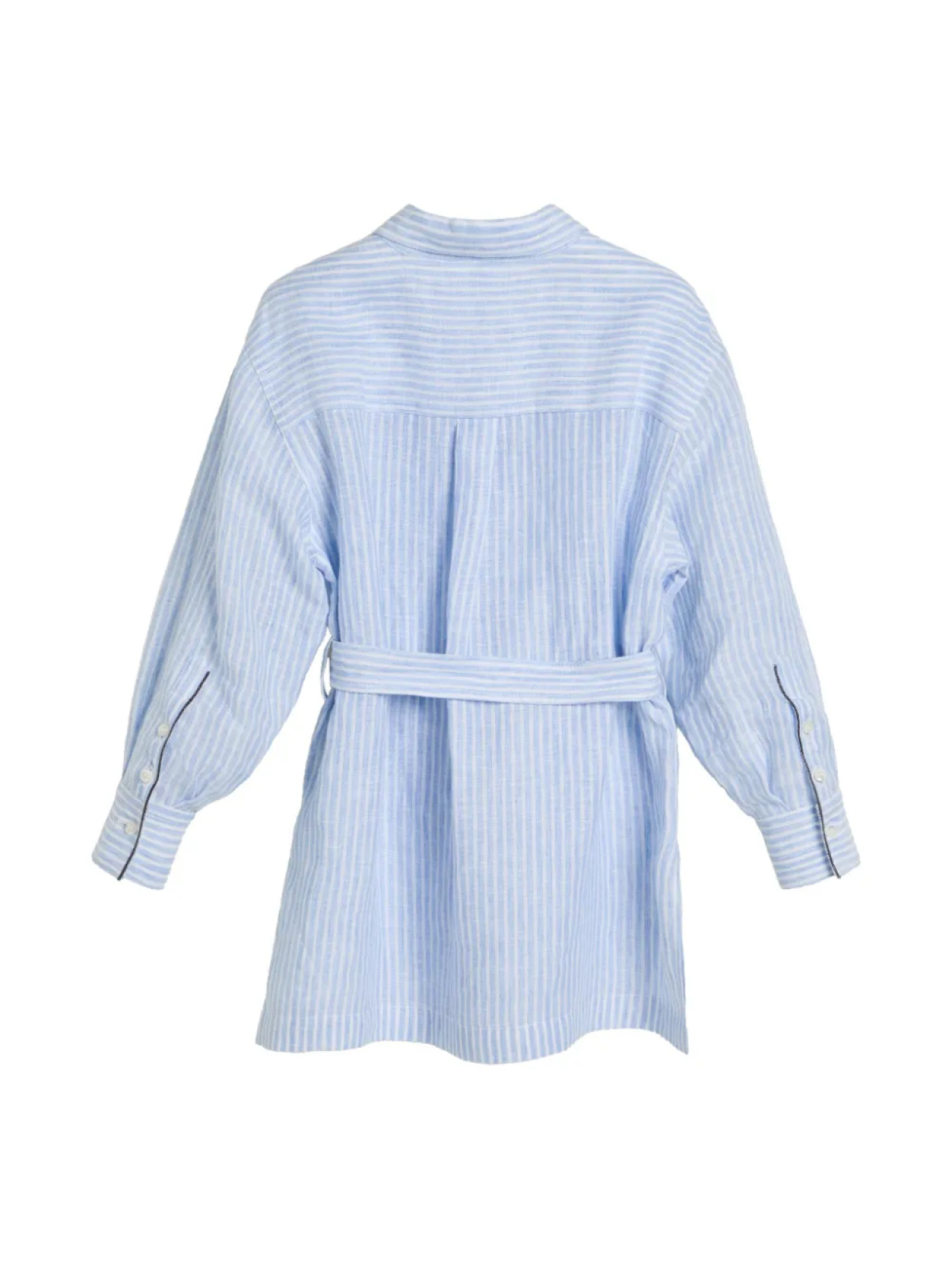 Brunello Cucinelli Kids длинная рубашка с поясом, синий