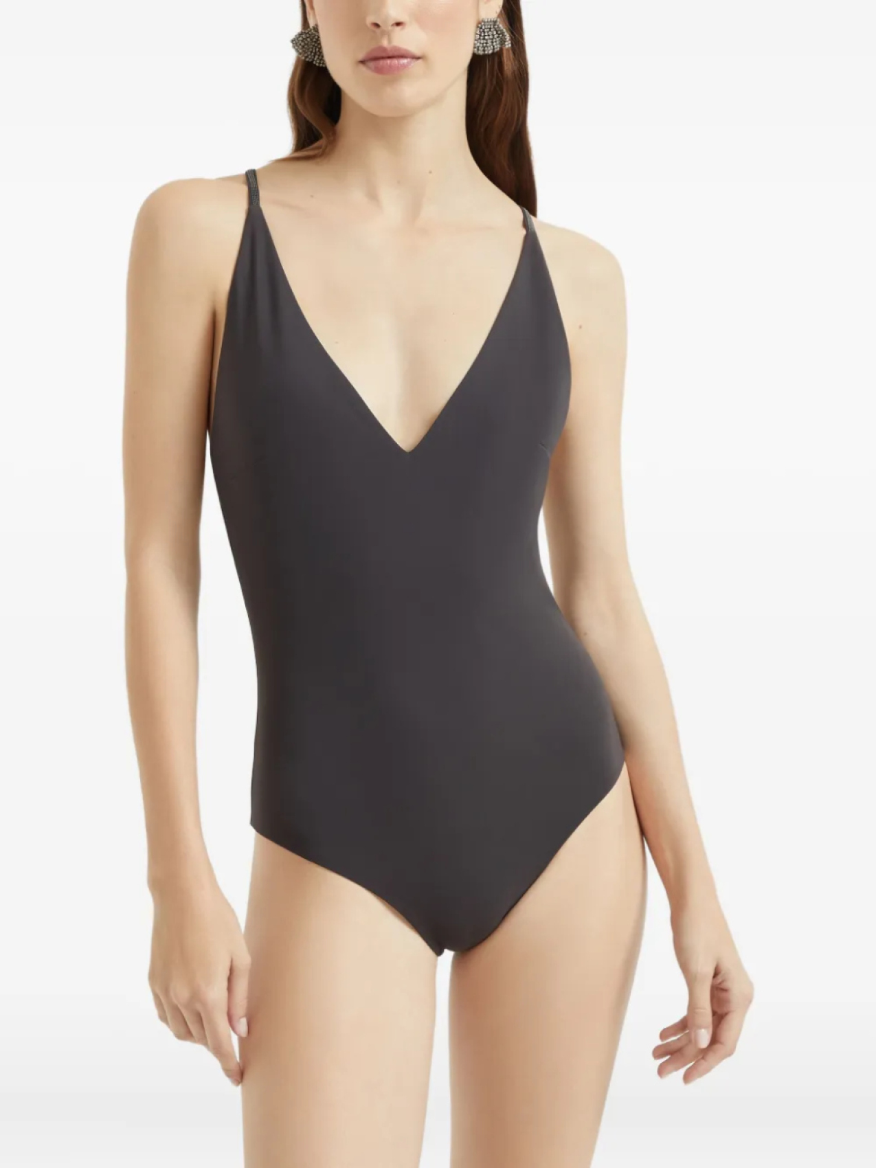 Brunello Cucinelli купальник с декором Monili, коричневый