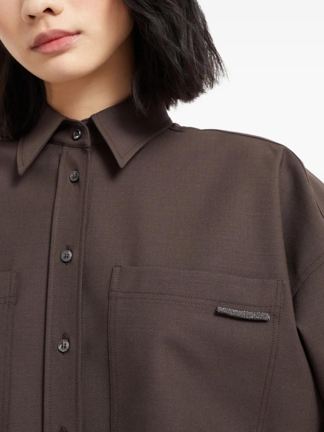 Brunello Cucinelli рубашка с декором Monili, коричневый