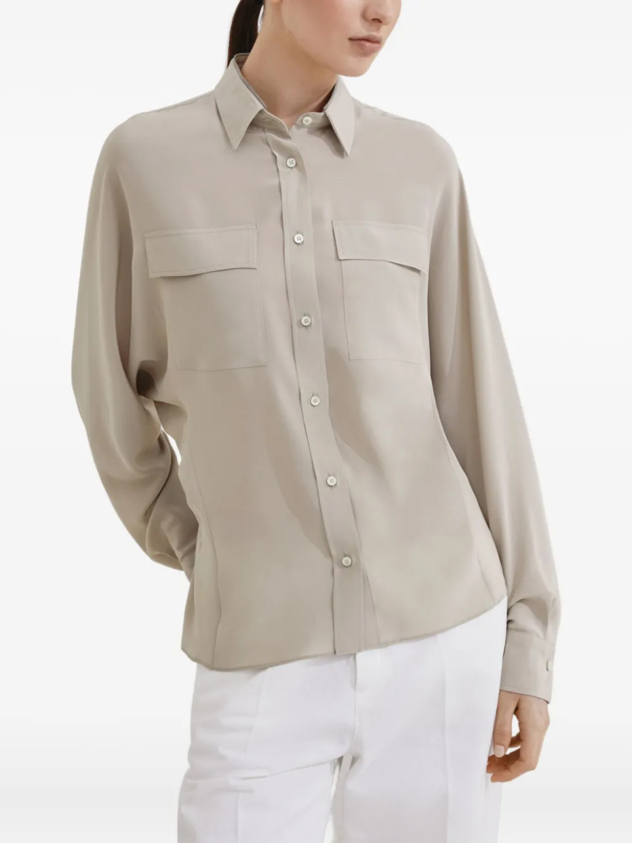 Brunello Cucinelli крепдешиновая рубашка, нейтральный
