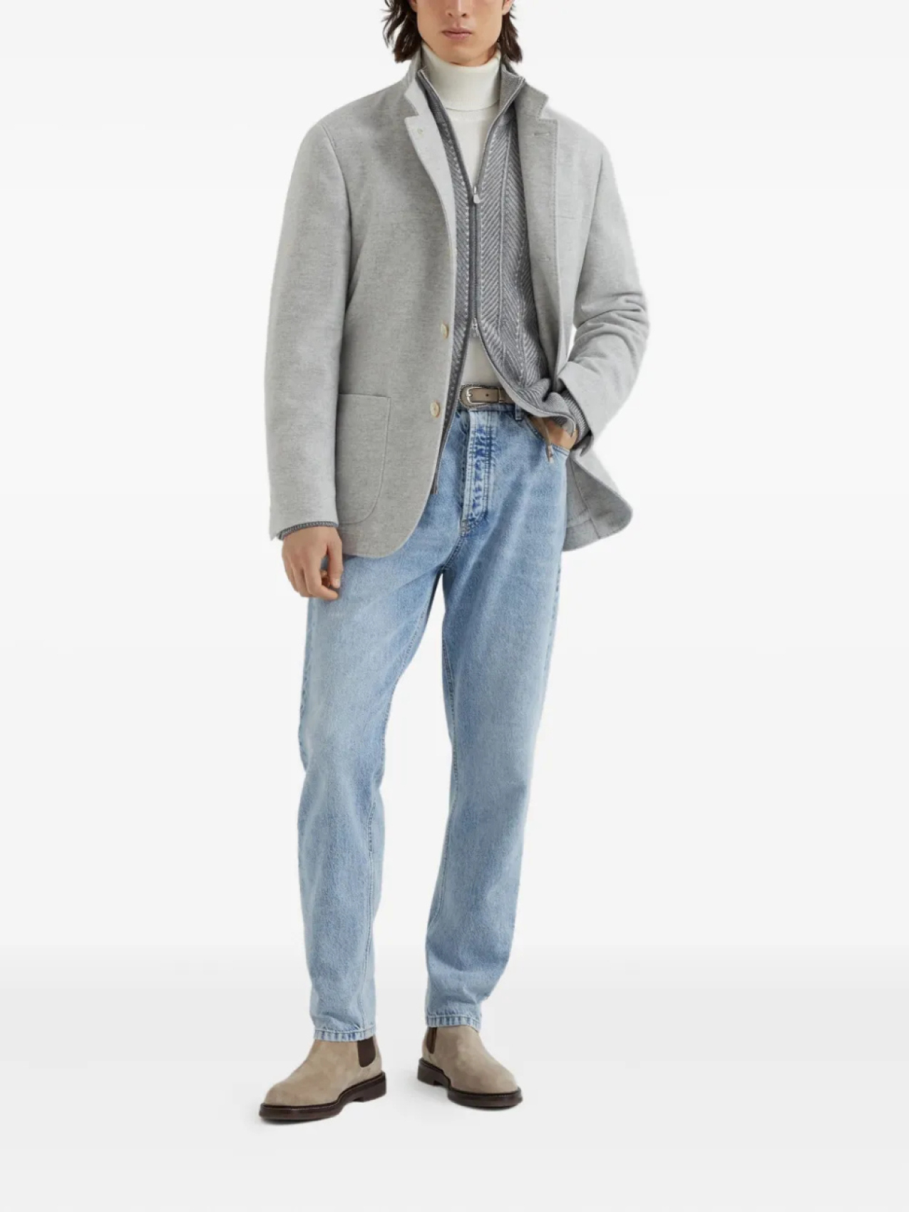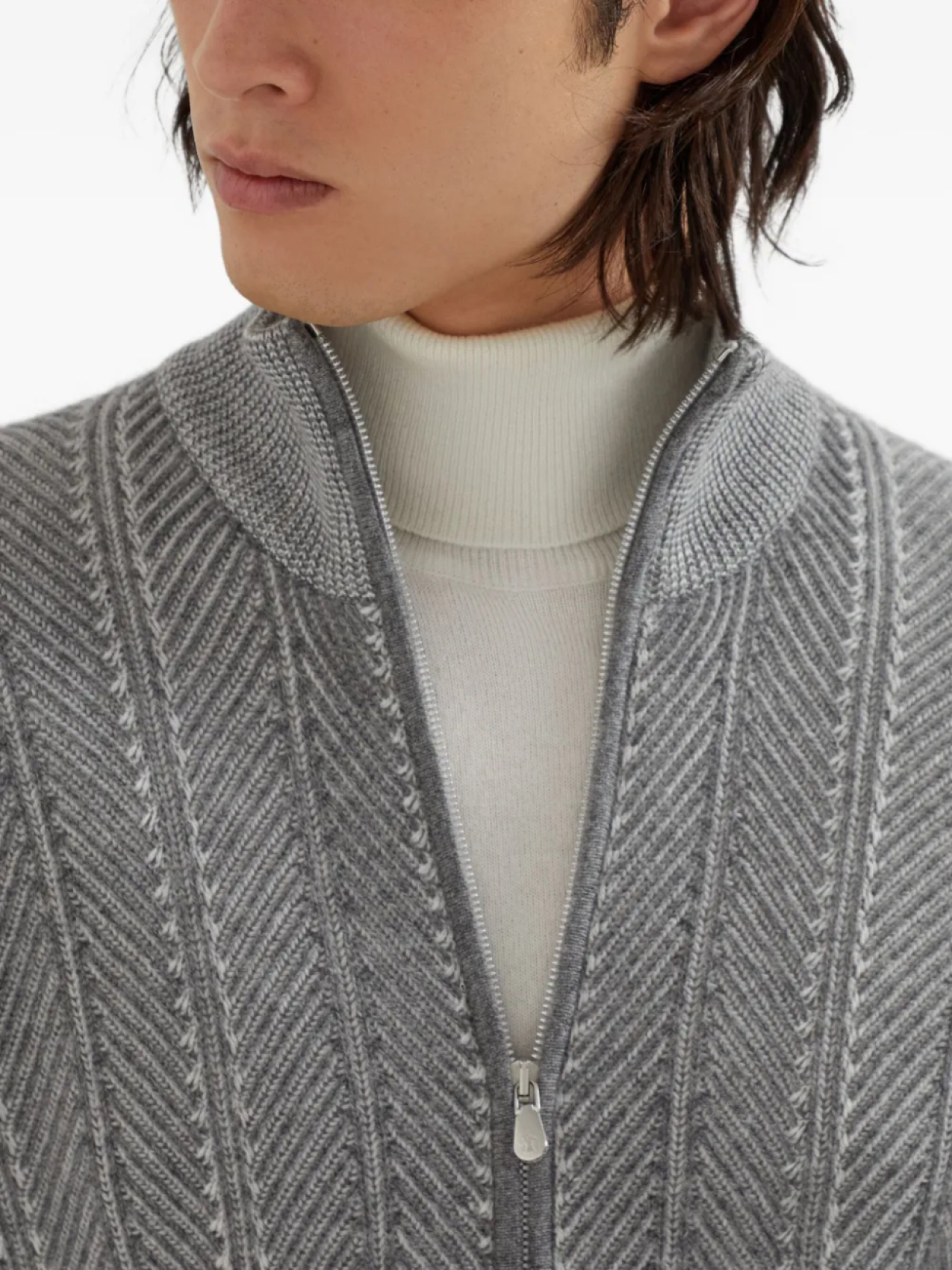 Brunello Cucinelli кардиган с узором в елочку, серый
