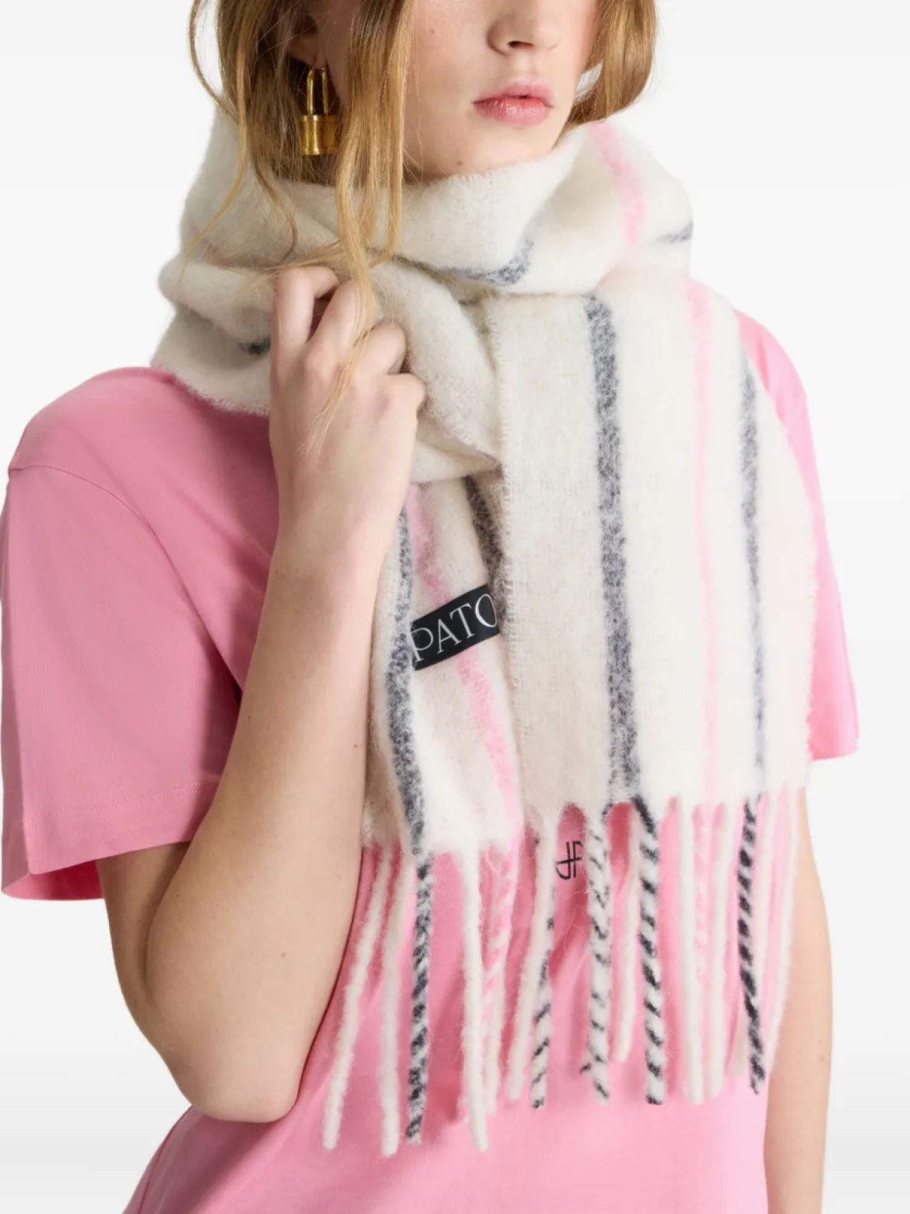 Полосатый шарф с бахромой Patou, нейтральный