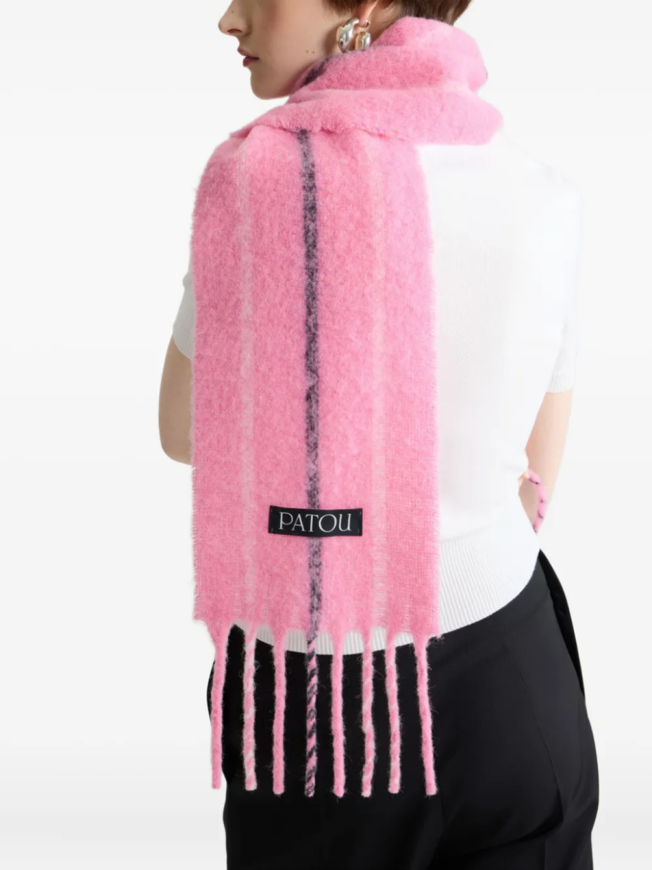Полосатый шарф с бахромой Patou, розовый