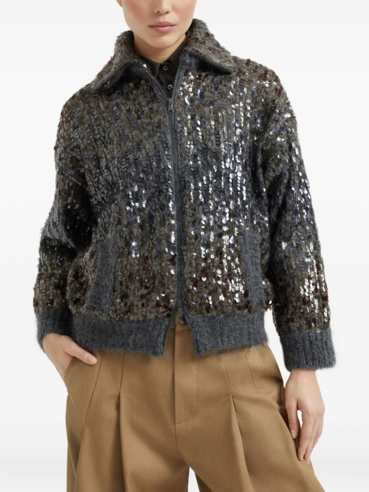 Brunello Cucinelli кардиган Dazzling с вышивкой, серый