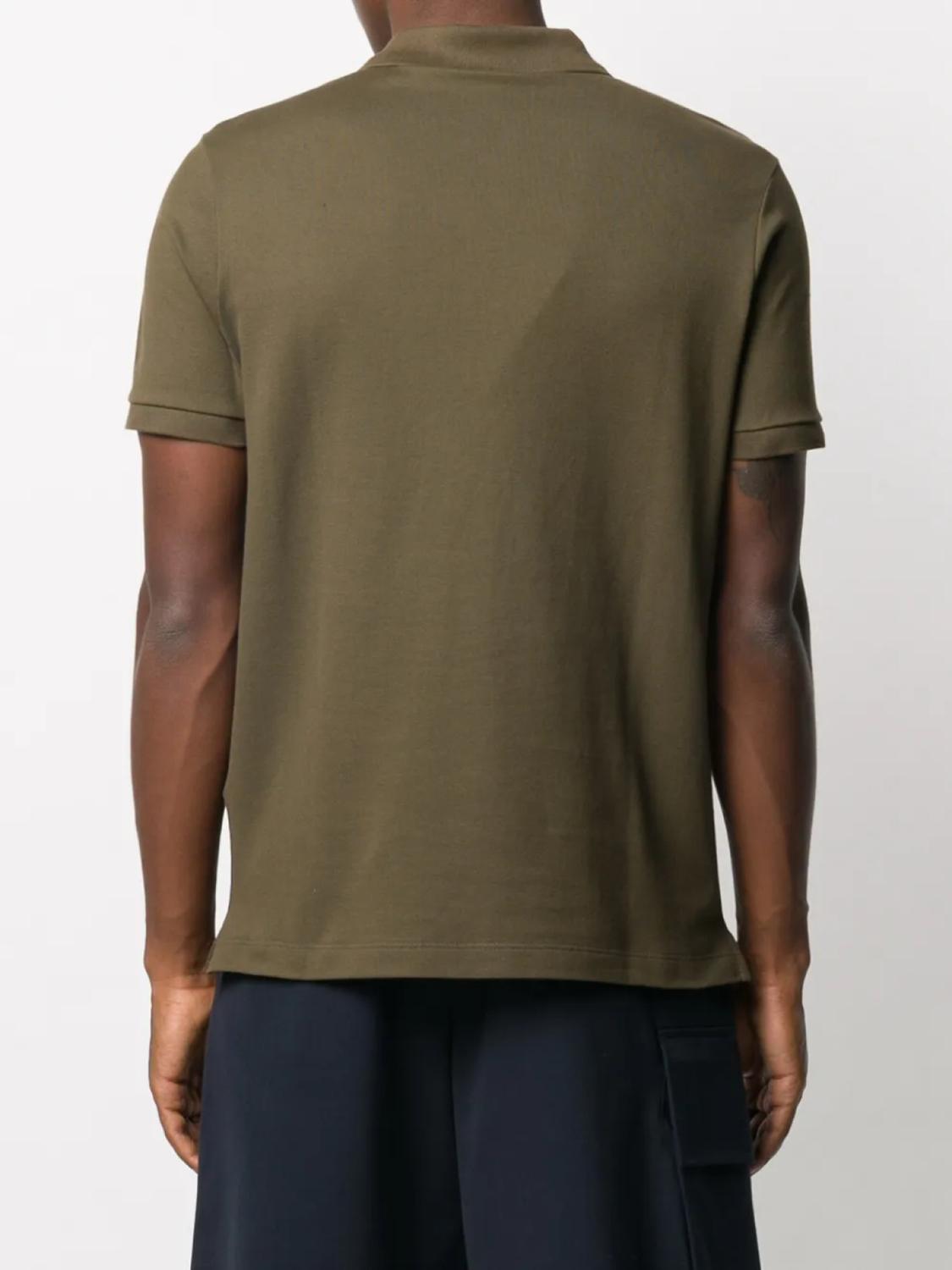 Воротник поло, короткие рукава и застежка на пуговицы. Цвет: зеленый.