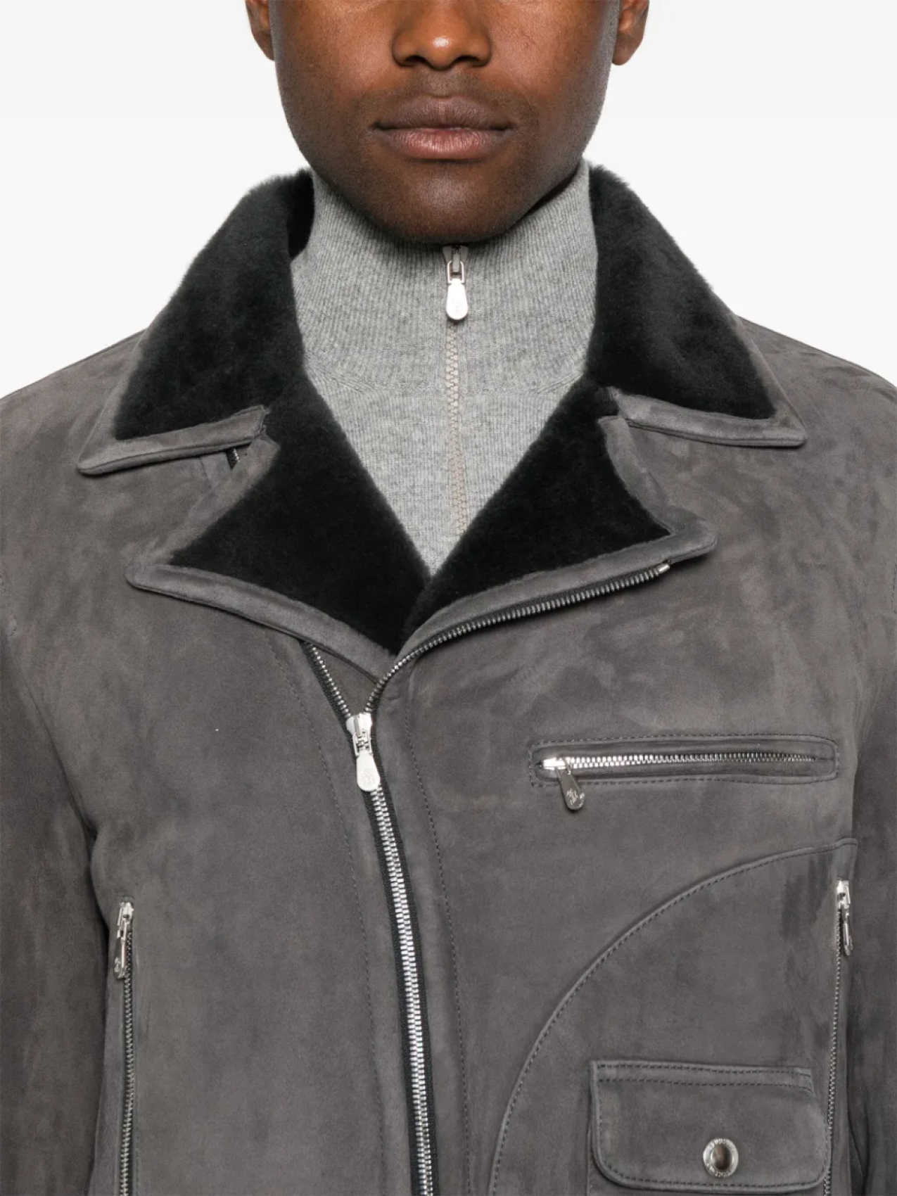Замшевая байкерская куртка Brunello Cucinelli, серый