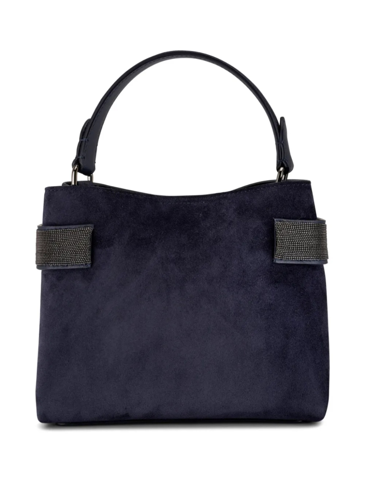 Темно-синий, черный, замша, знаковая отделка Monili, тисненый логотип спереди, магнитная застежка, съемный регулируемый ремень на плечо, верхняя ручка, основное отделение и съемная косметичка.