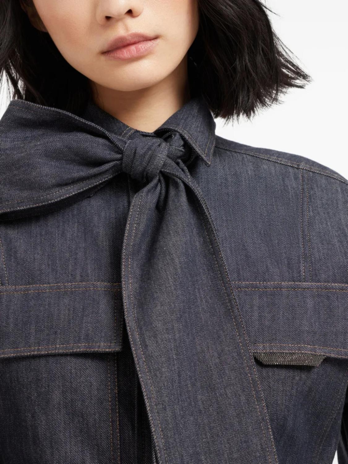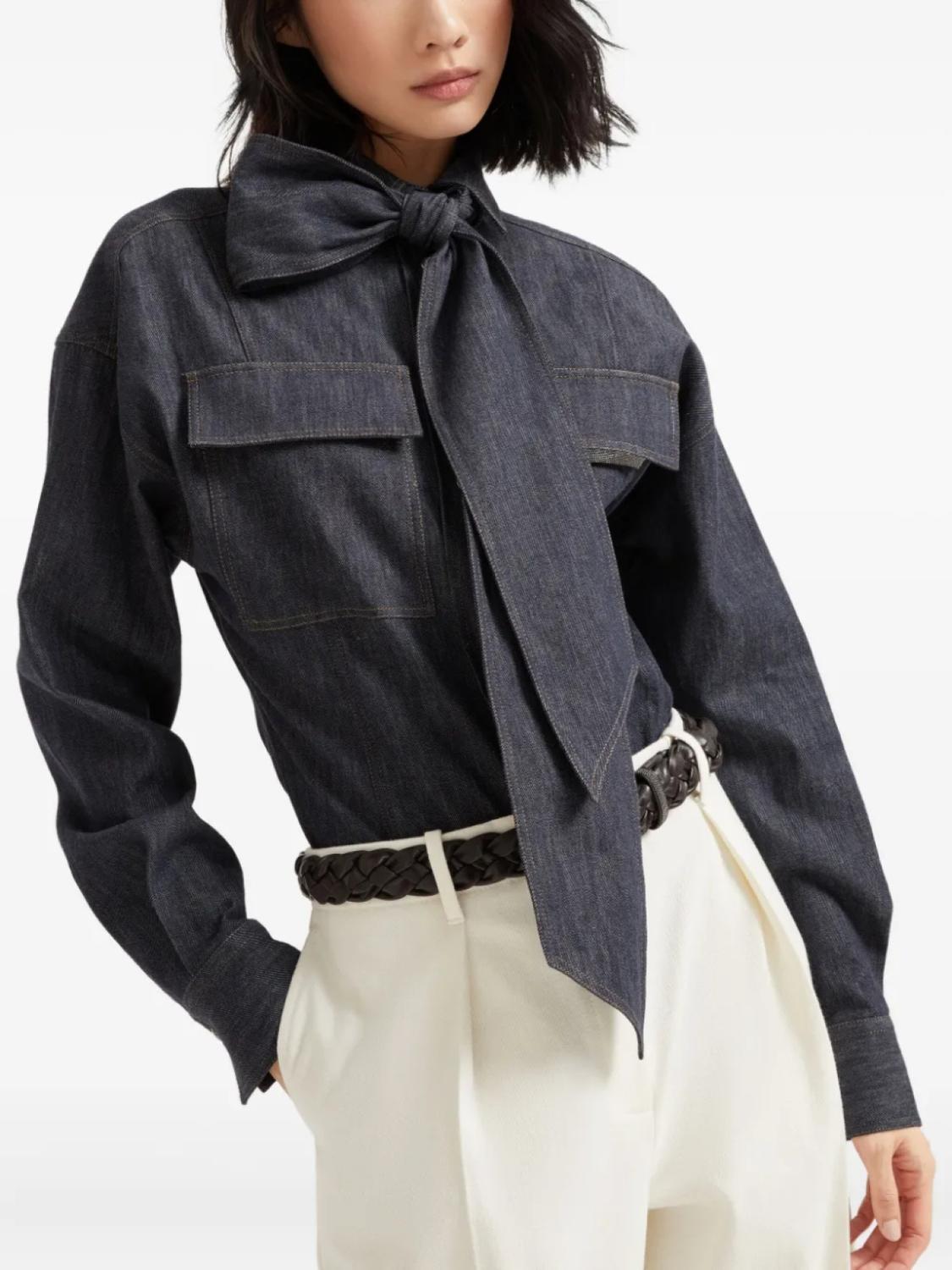 Brunello Cucinelli рубашка с бантом, синий