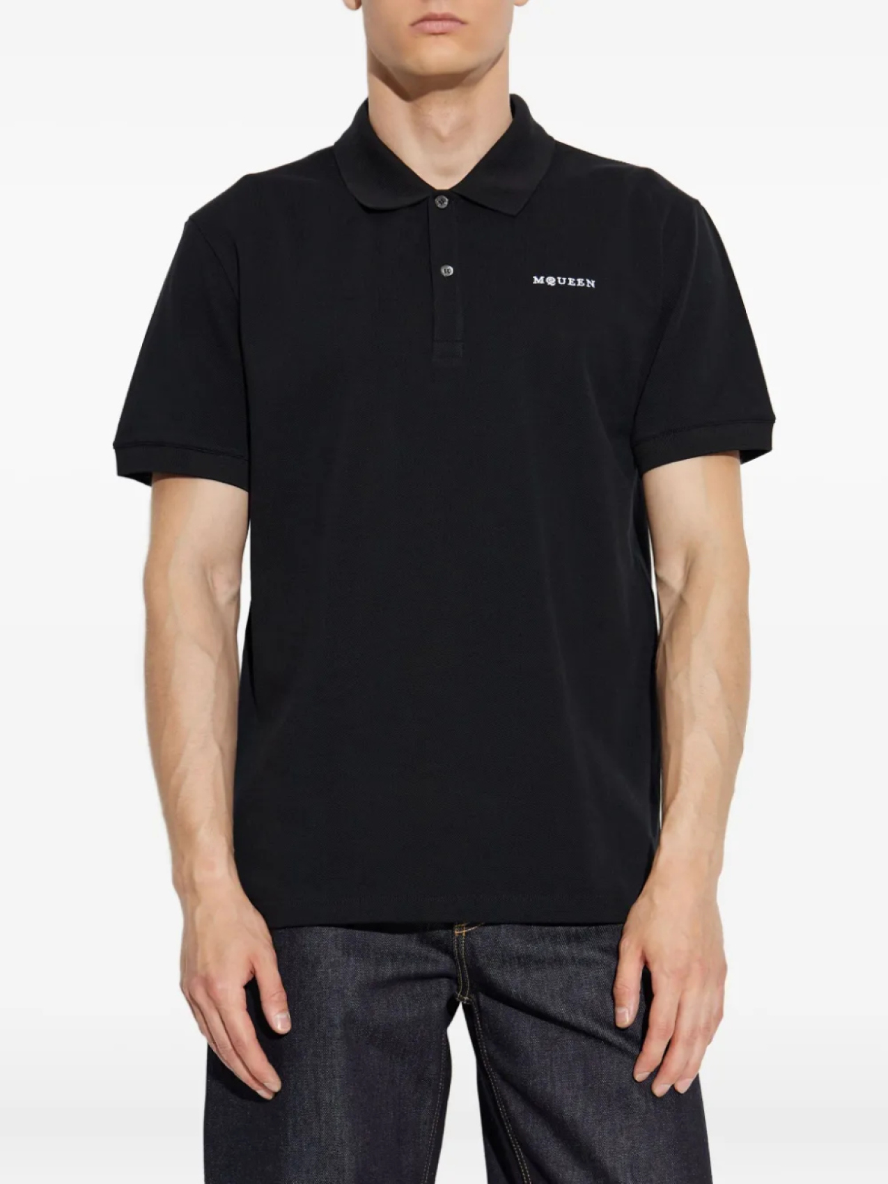 Хлопковая рубашка-поло с вышитым логотипом Alexander McQueen, черный 33 622₽