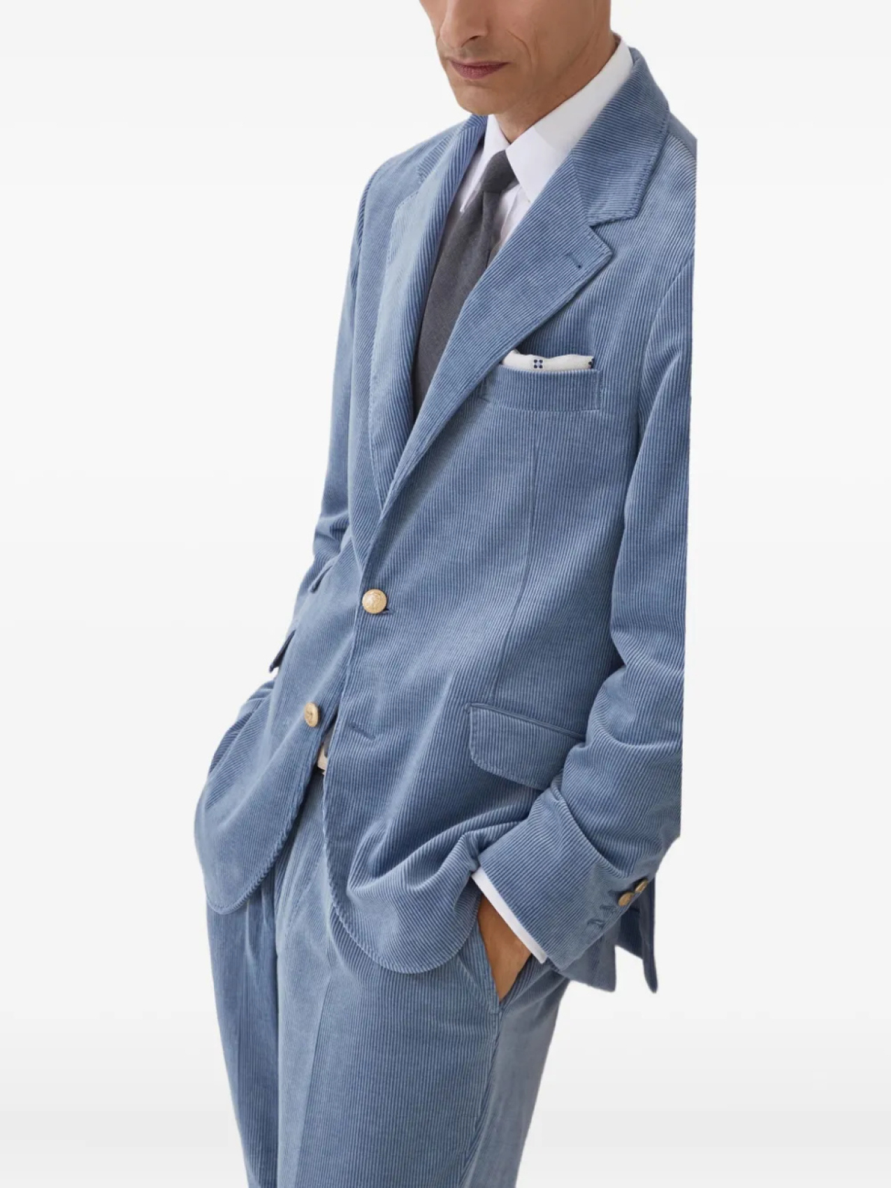 Brunello Cucinelli однобортный вельветовый пиджак, синий