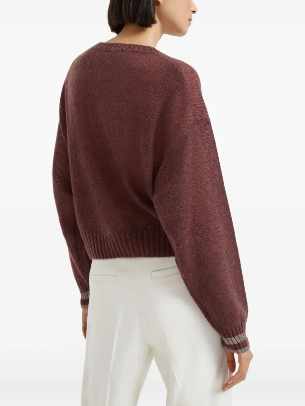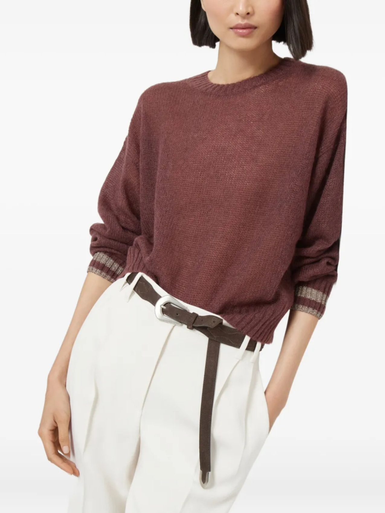 Brunello Cucinelli свитер с отделкой в рубчик, фиолетовый