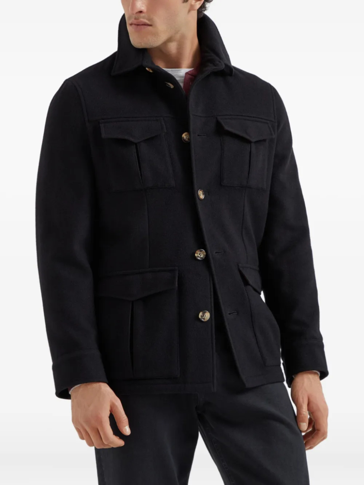 Кашемировая куртка в стиле милитари Brunello Cucinelli, черный