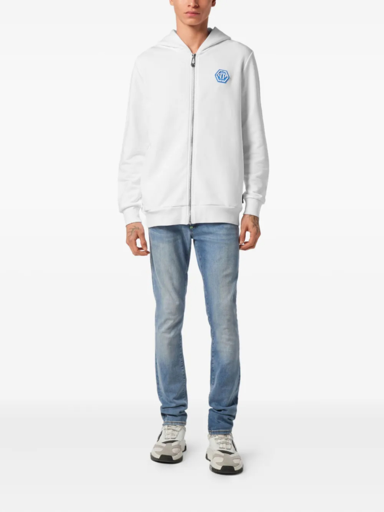 Толстовка с капюшоном на молнии с логотипом Philipp Plein, белый