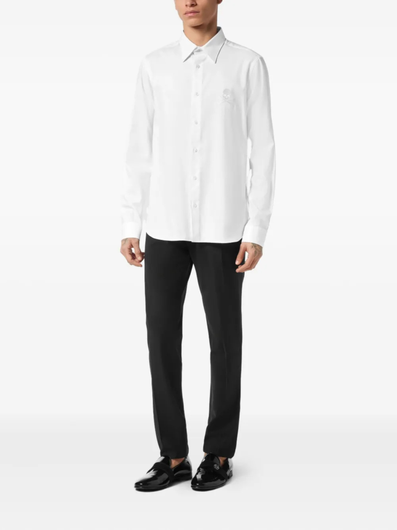 Рубашка на пуговицах с вышитым черепом Philipp Plein, белый