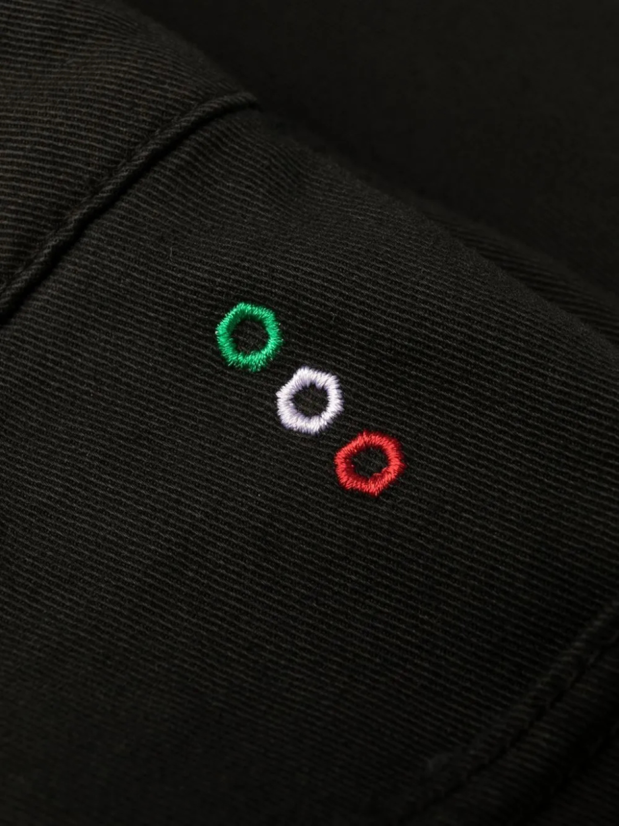 Черный, эластичный хлопок, деним, нашивка с логотипом спереди, вышитый логотип, прямой крой, низкая посадка, застежка на молнии и пуговице спереди и пять карманов.