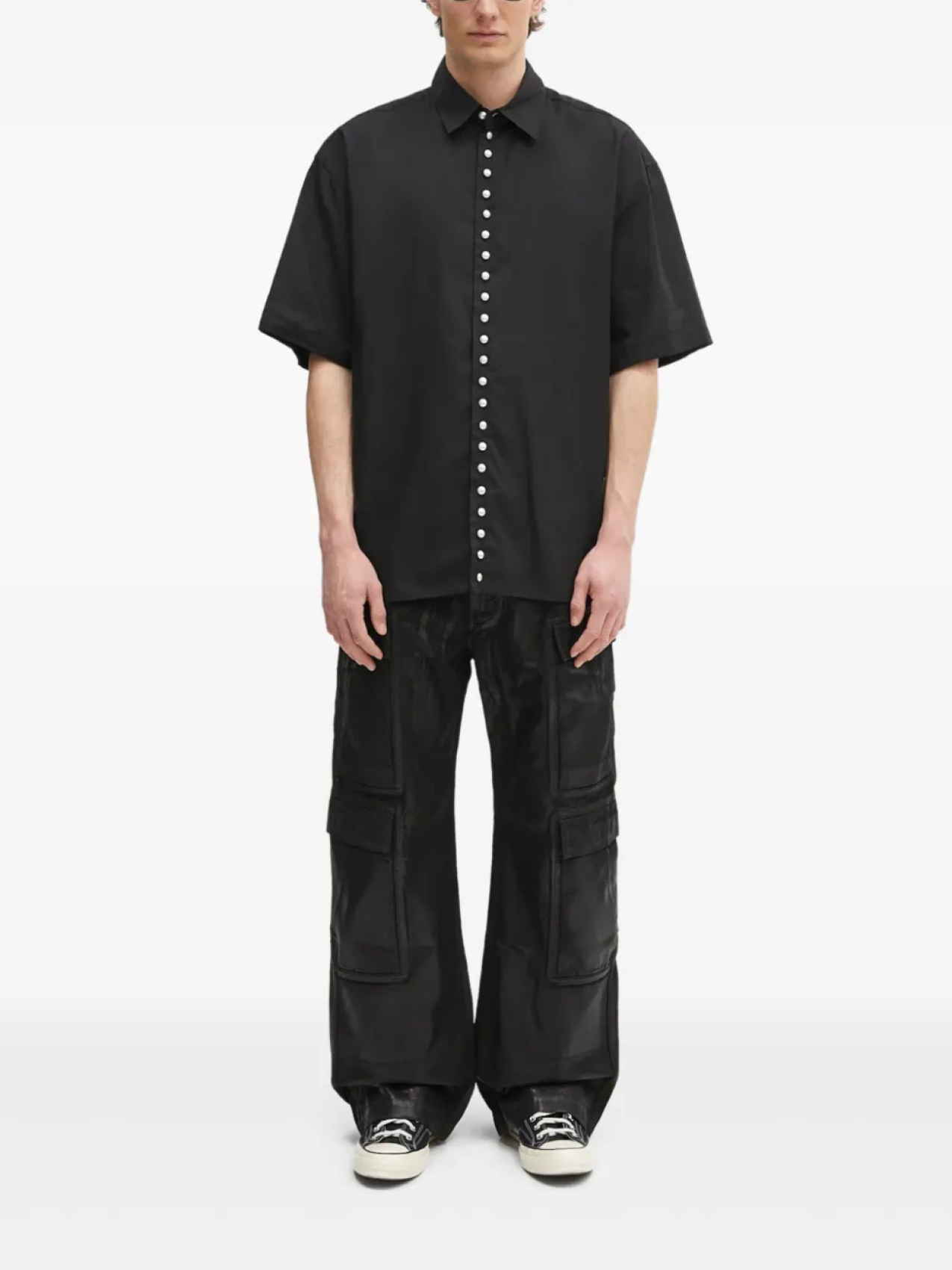 Рубашка AMBUSH с короткими рукавами, украшенная жемчугом, черный