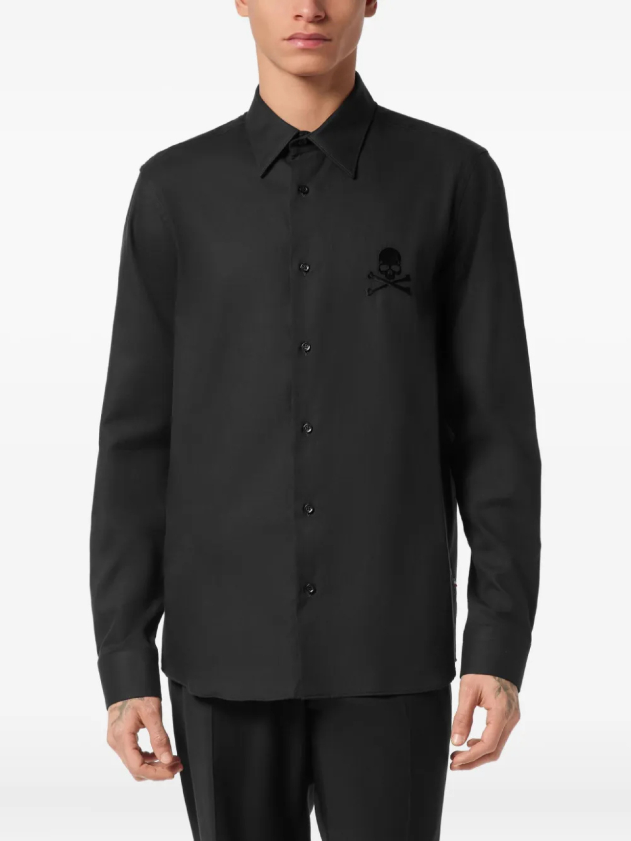 Рубашка с длинными рукавами, вышитая черепом Philipp Plein, черный 58 452₽