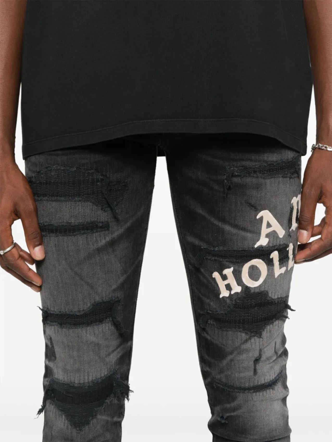 Узкие джинсы AMIRI с эффектом потертости, черный