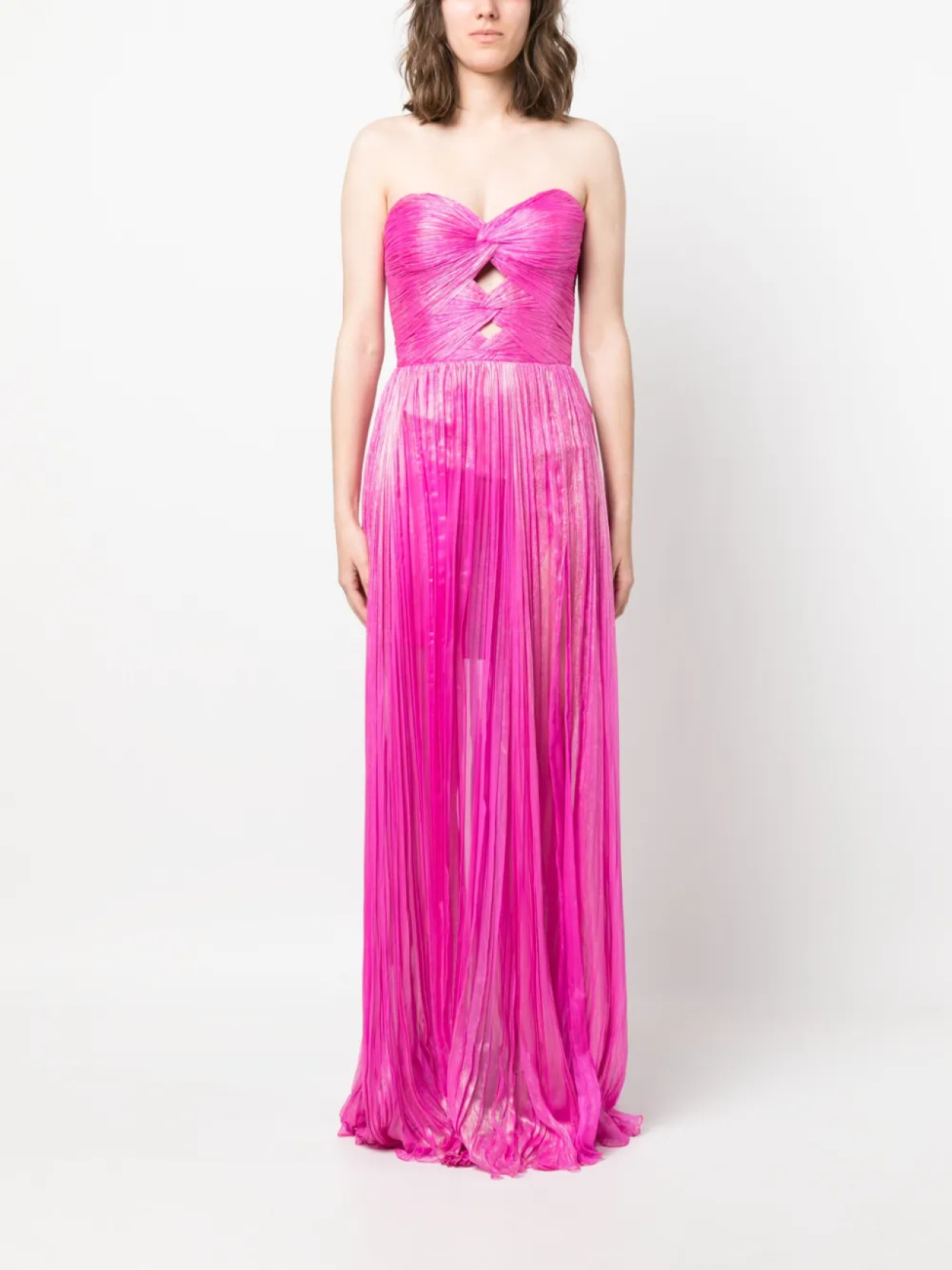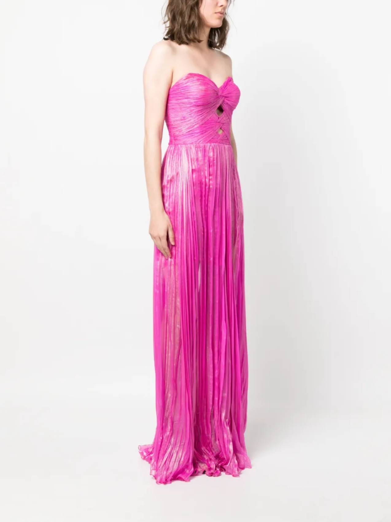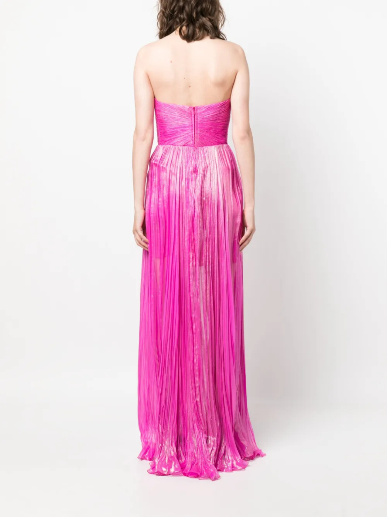 Фуксия, смесовый шелк, без бретелей, вырез в форме сердца, вырезные детали, застежка на молнии сзади, А-образный силуэт и длина макси.