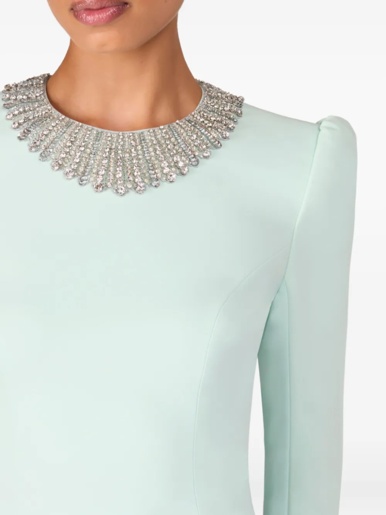 Jenny Packham декорированное платье с длинными рукавами, зеленый