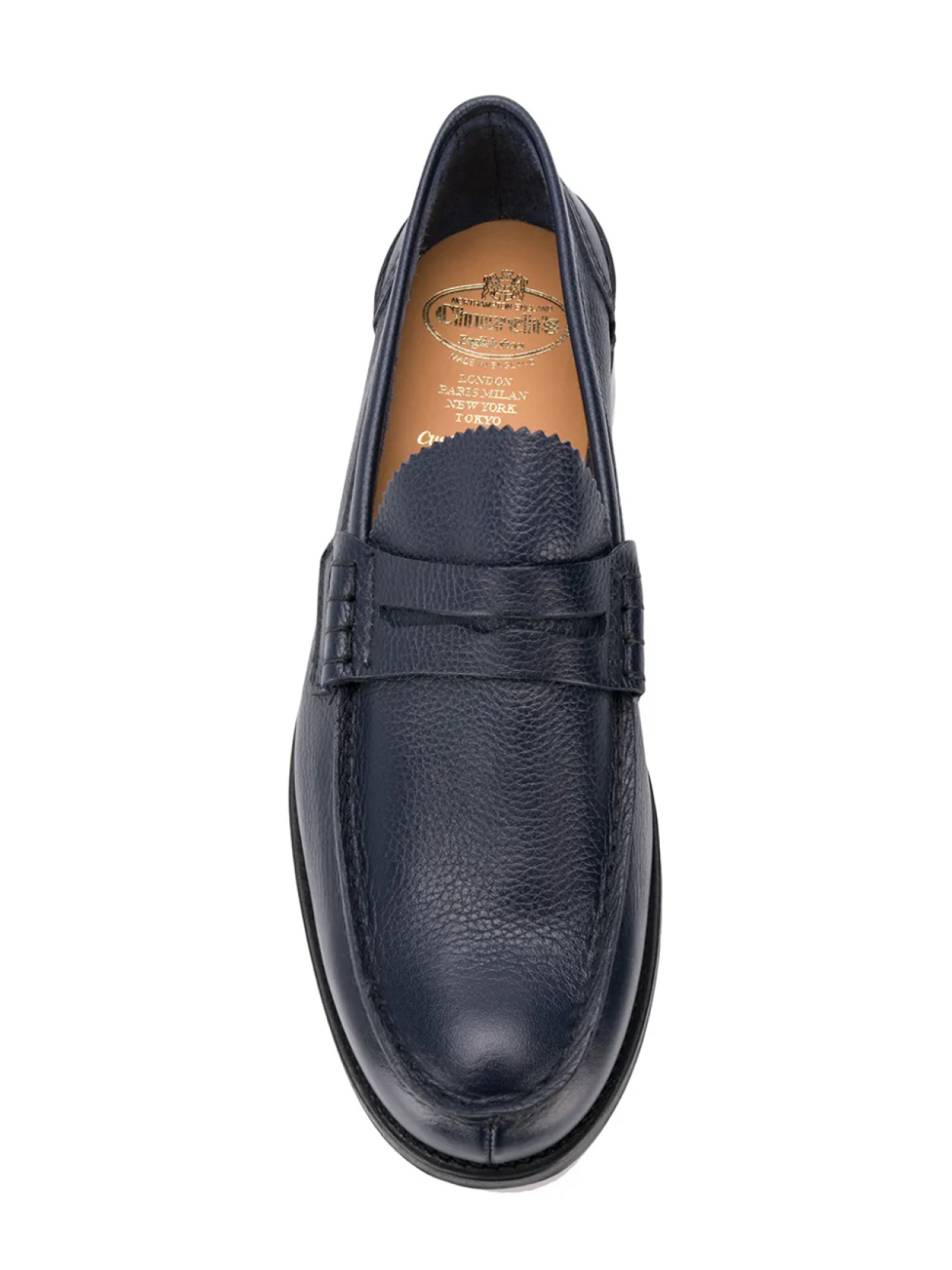 Классические лоферы от Church's (Чёрчс). Наборная подошва, закругленный носок и модель слип-он, без застежки.