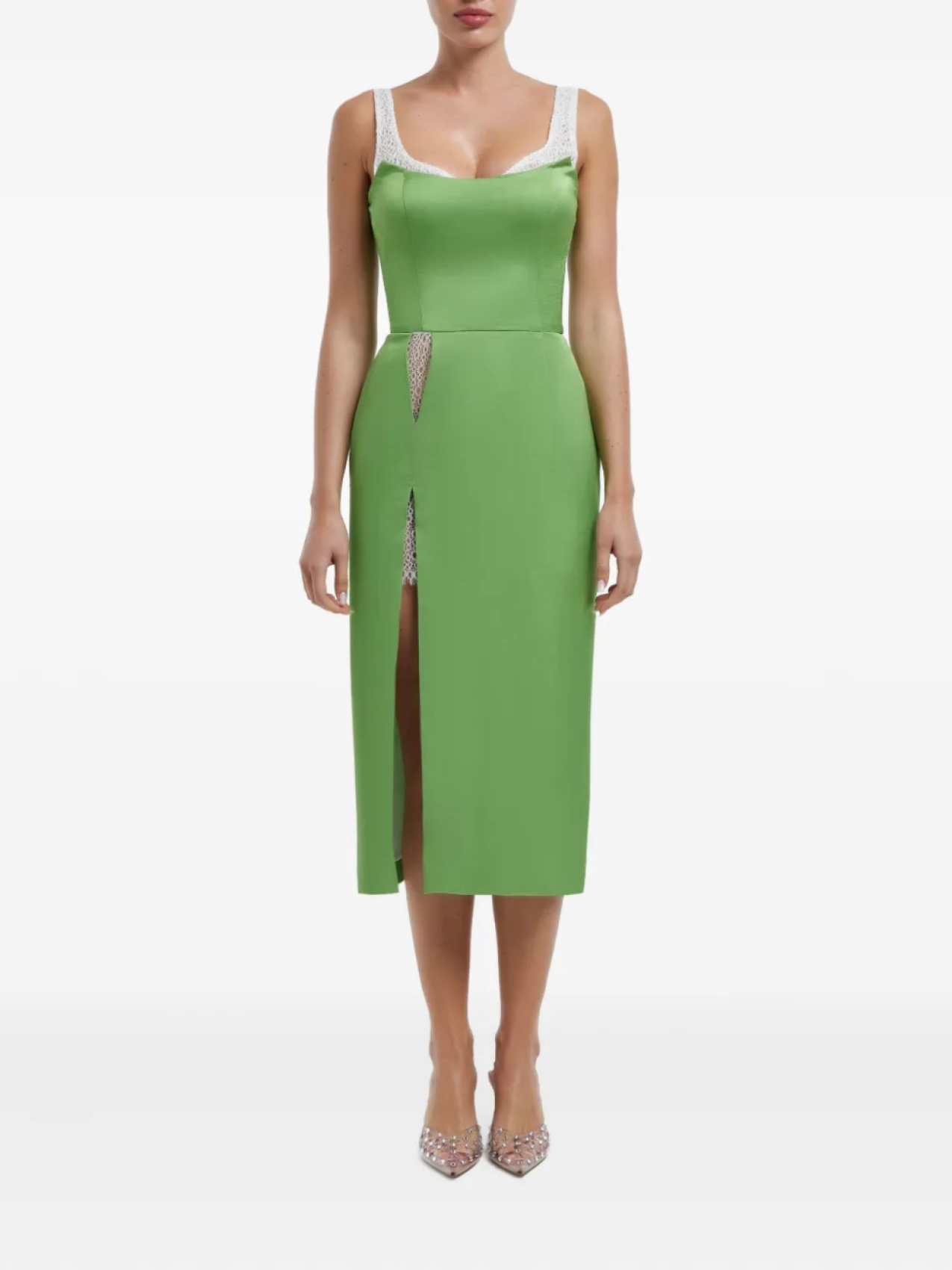 POST MERIDIEM платье миди с кружевной вставкой, зеленый