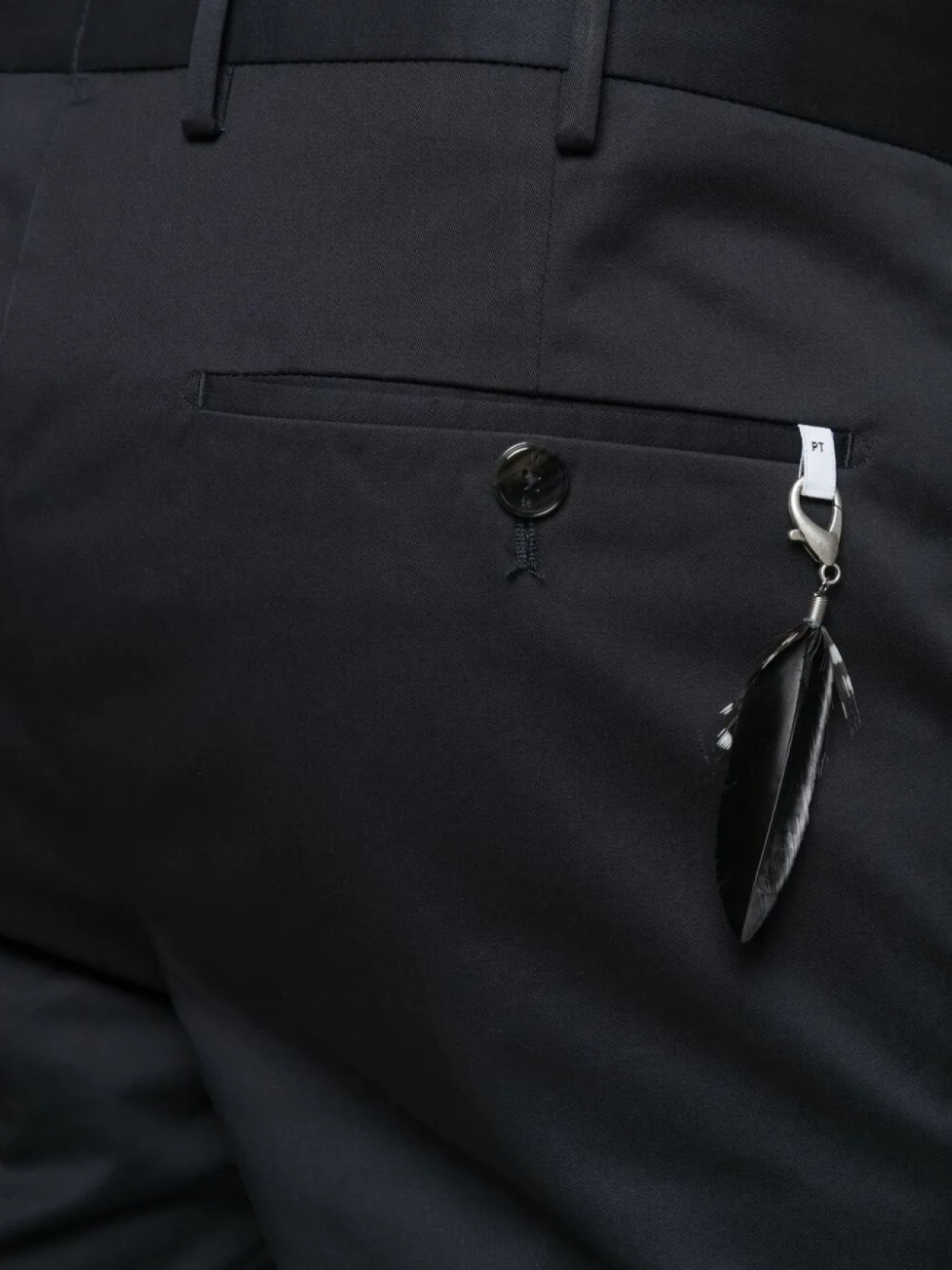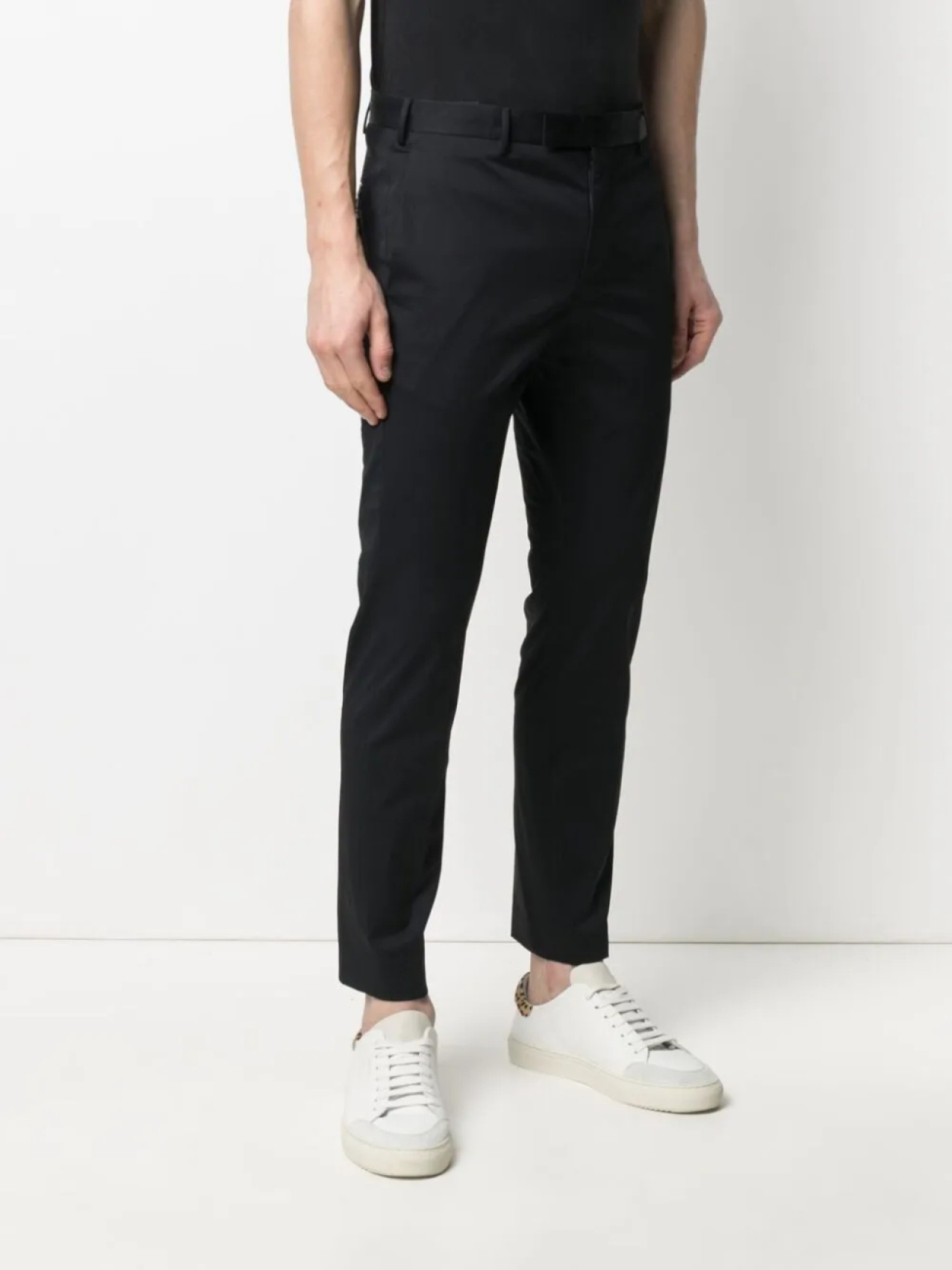 Средняя посадка, петли для ремня, потайная застежка спереди и узкий крой.