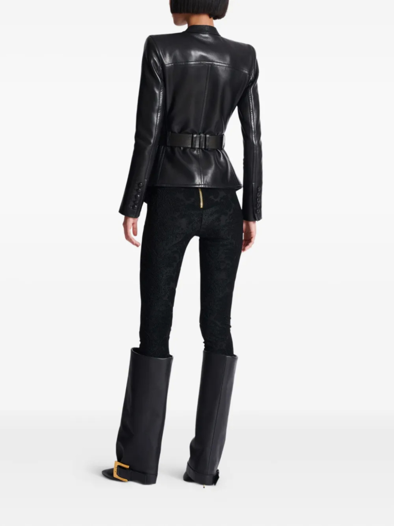 Balmain кожаное пальто с поясом, черный