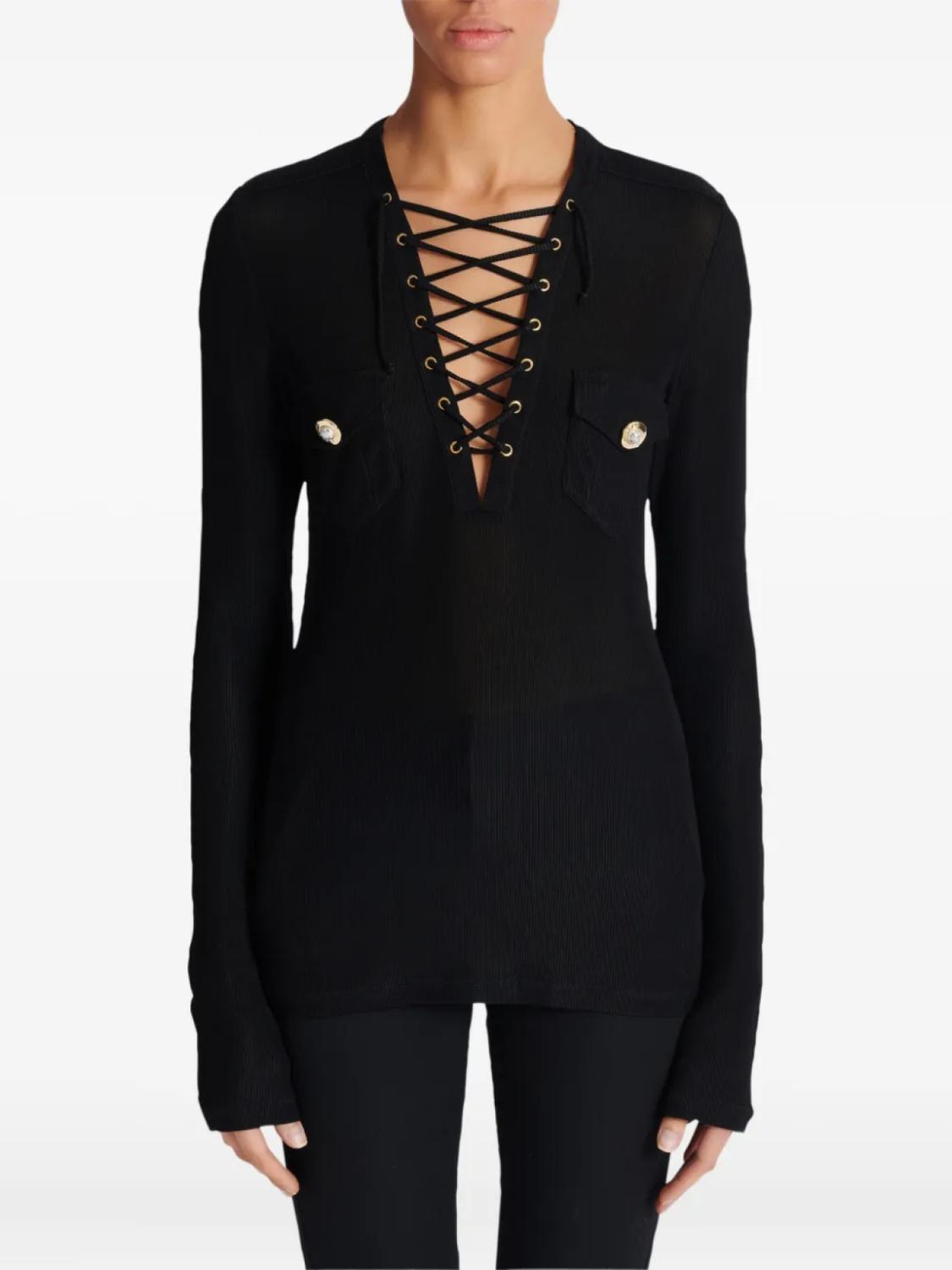 Balmain топ с длинными рукавами и шнуровкой, черный