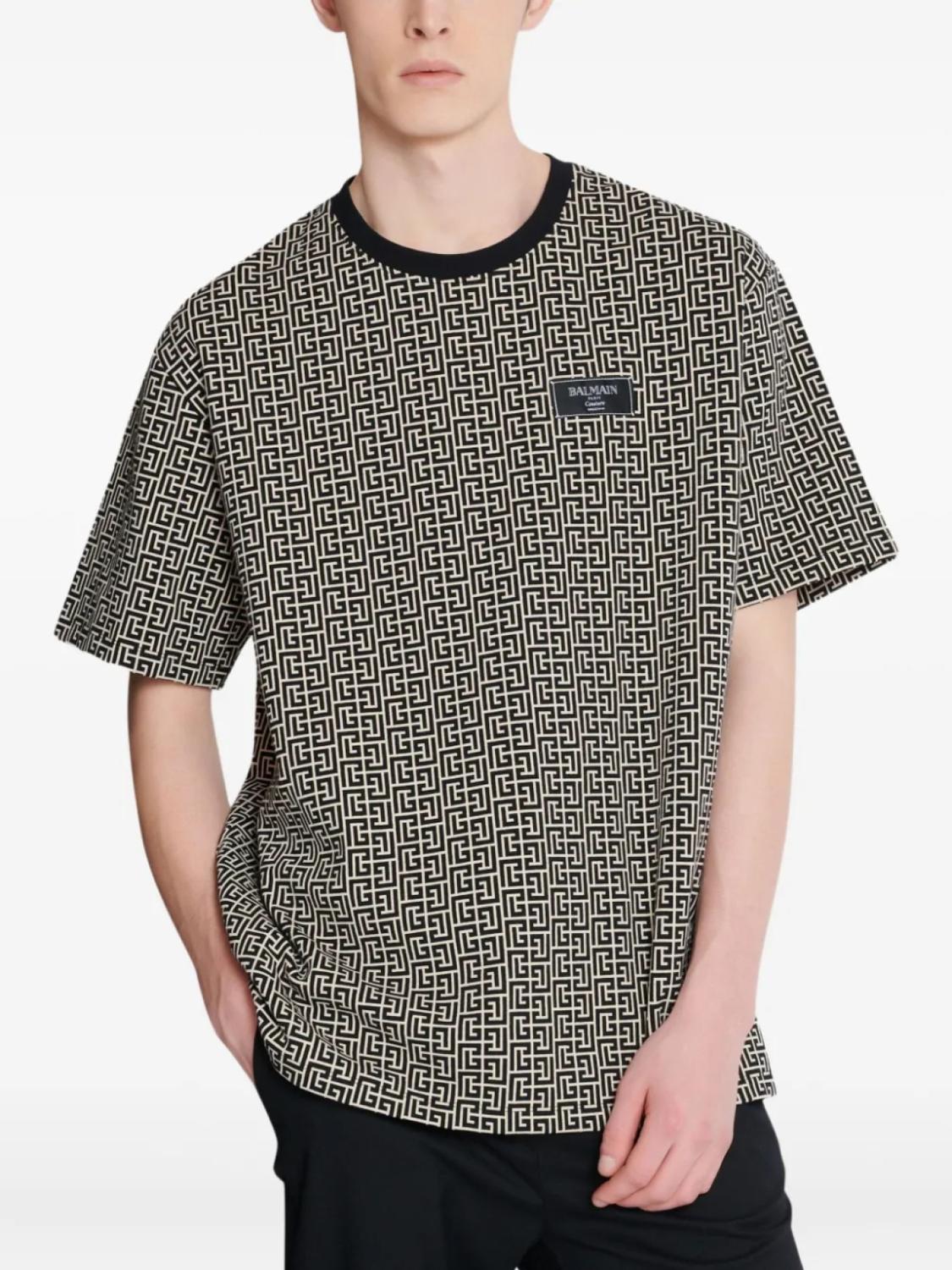 Футболка с монограммой и жаккардом Balmain, черный 51 073₽