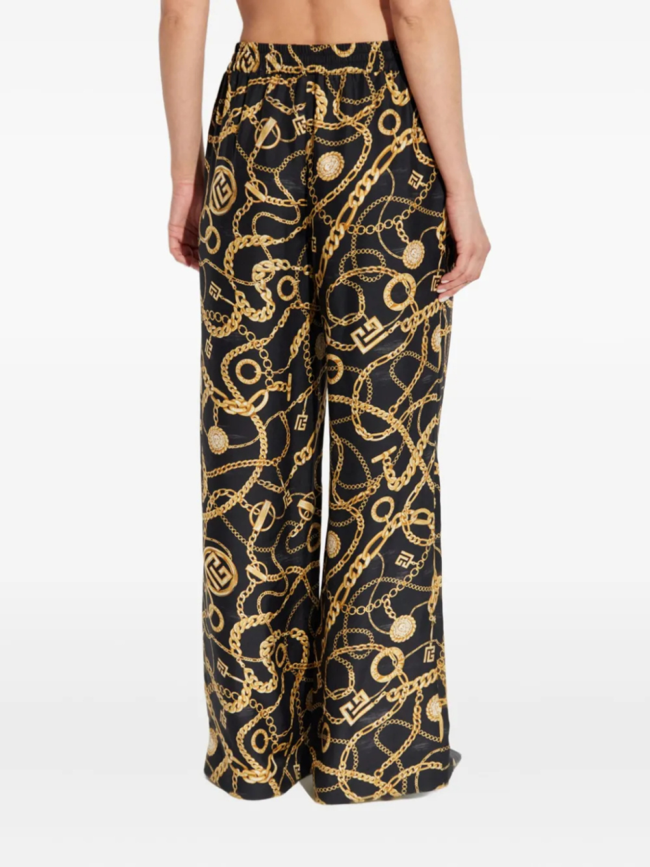 Шелковые брюки с принтом «цепочка» Balmain, черный