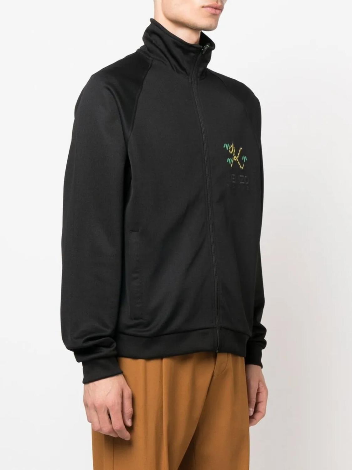 Черный, смесовый хлопок, нашивка с логотипом на груди, круглый вырез, длинные рукава и застежка на молнии спереди.