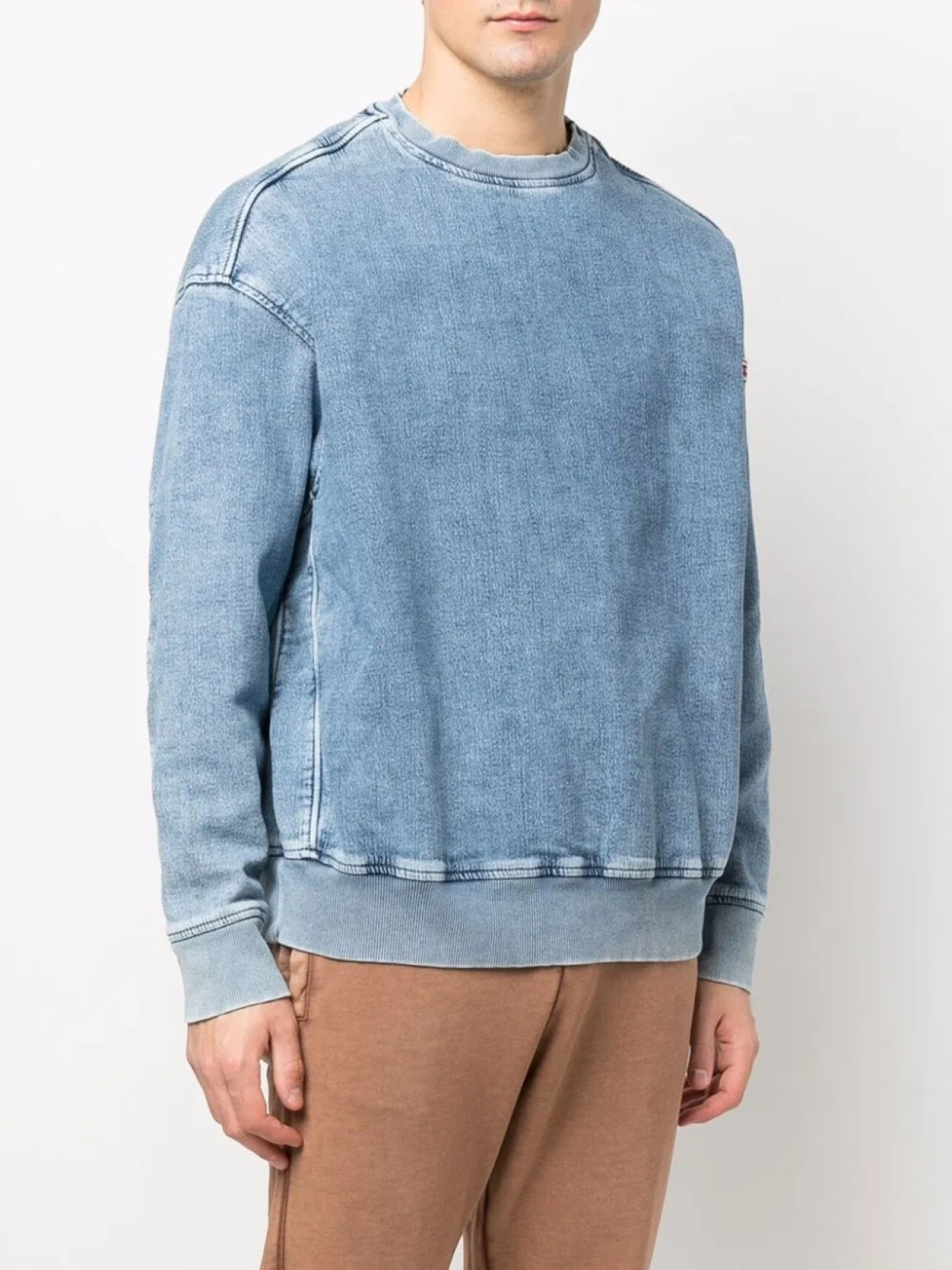 Подробнее о товаре: Обработанный деним, круглый вырез, длинные рукава, края в рубчик и прямой подол. В состав этой модели входит хлопок, производитель которого участвует в Better Cotton Initiative. Производитель может смешивать хлопок Better Cotton с другими видами хлопка.. Узнать больше о том, какие товары получают отметку «Ответственный выбор», можно из материала «Как мы оцениваем экологичность и этичность».