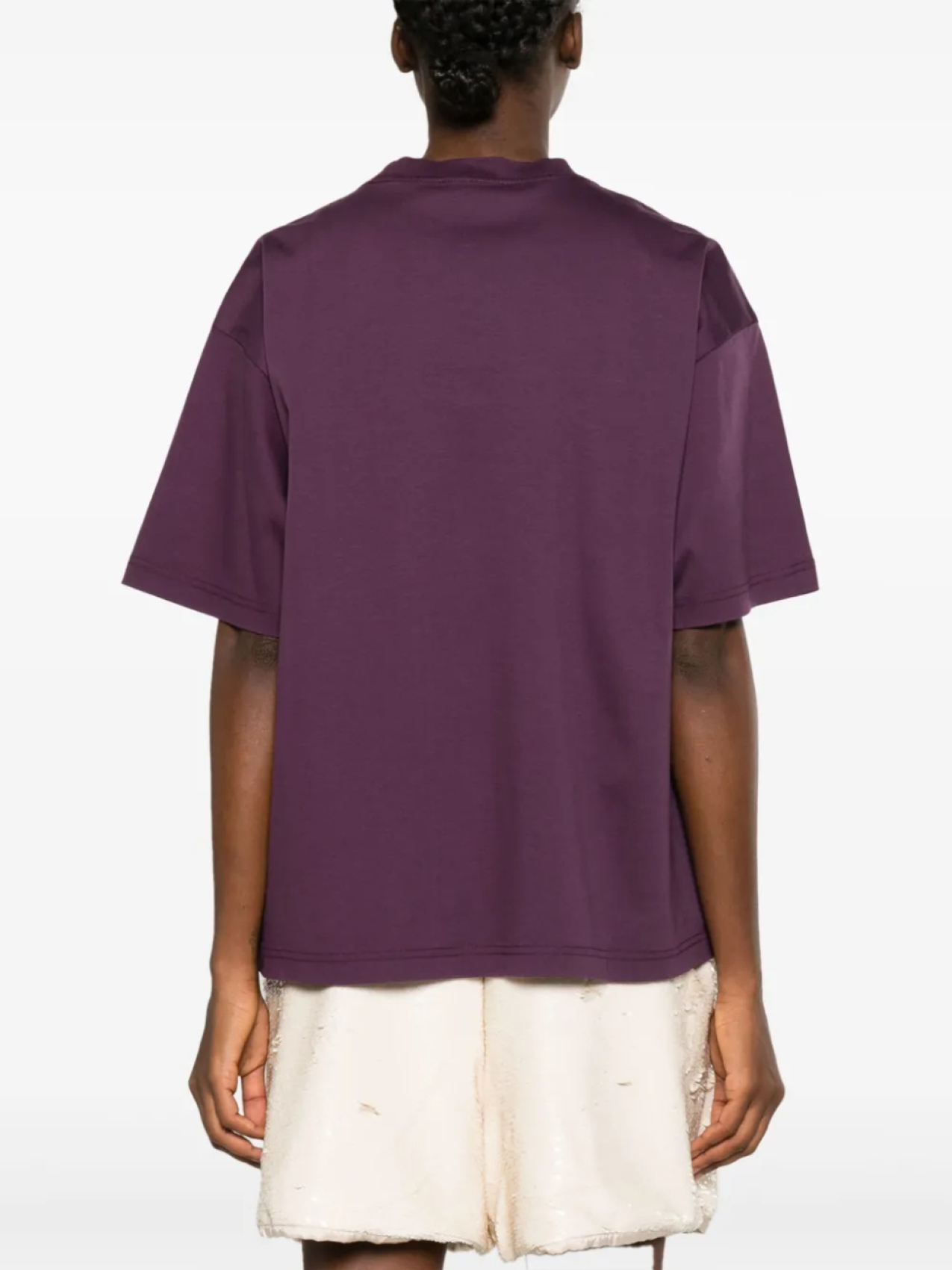 Темно-фиолетовый, хлопок, ткань джерси, логотип-аппликация, вышитый логотип спереди, круглый вырез, приспущенные плечи, короткие рукава и прямой подол.