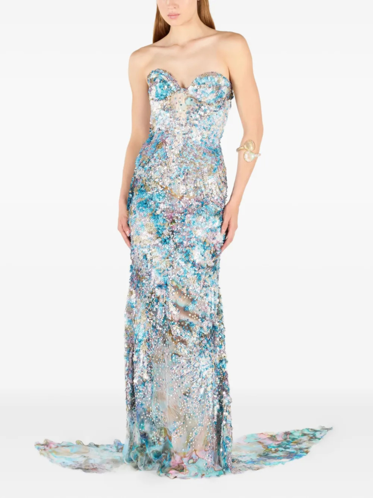 Roberto Cavalli платье макси с пайетками, синий 1 605 838₽