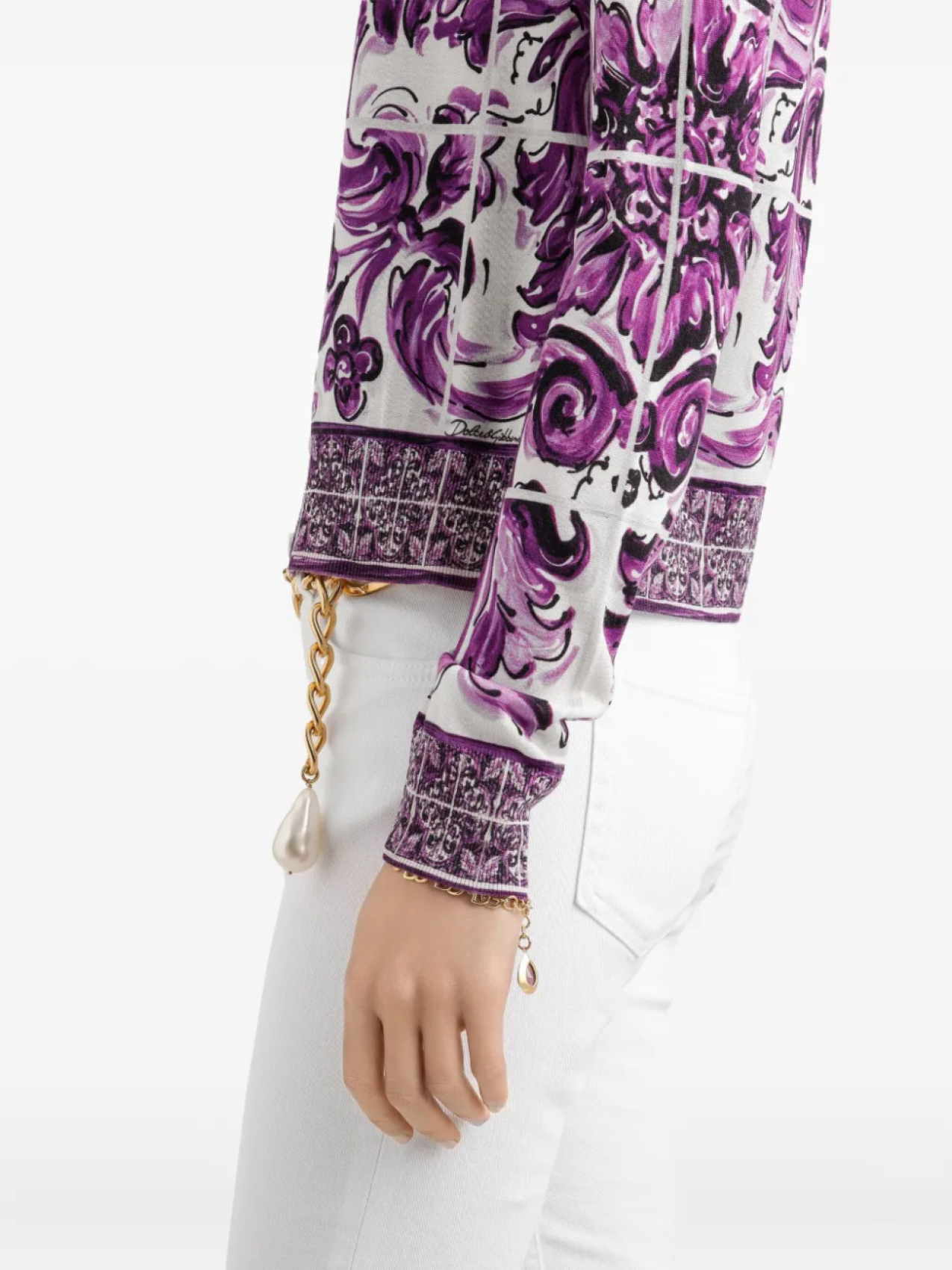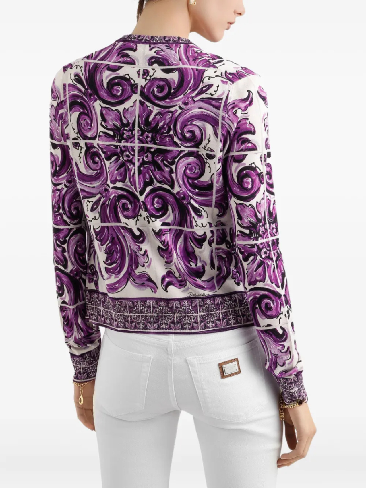 Dolce & Gabbana шелковый кардиган с принтом Majolica, белый