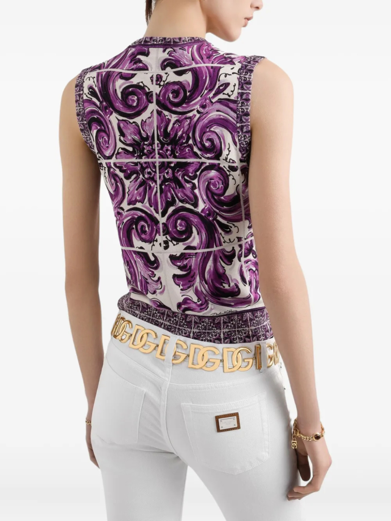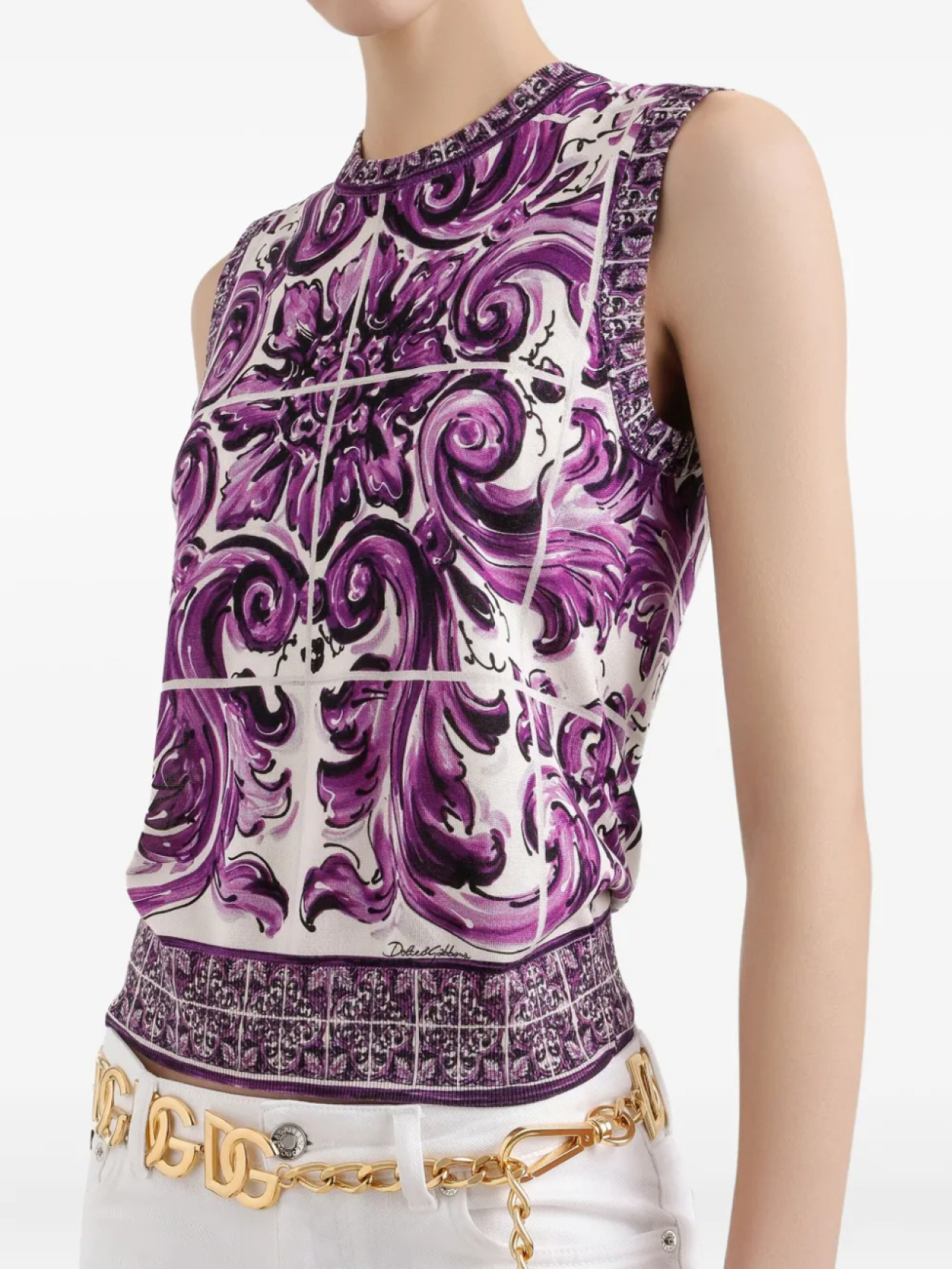 Dolce & Gabbana шелковый топ с принтом Majolica, белый 137 280₽