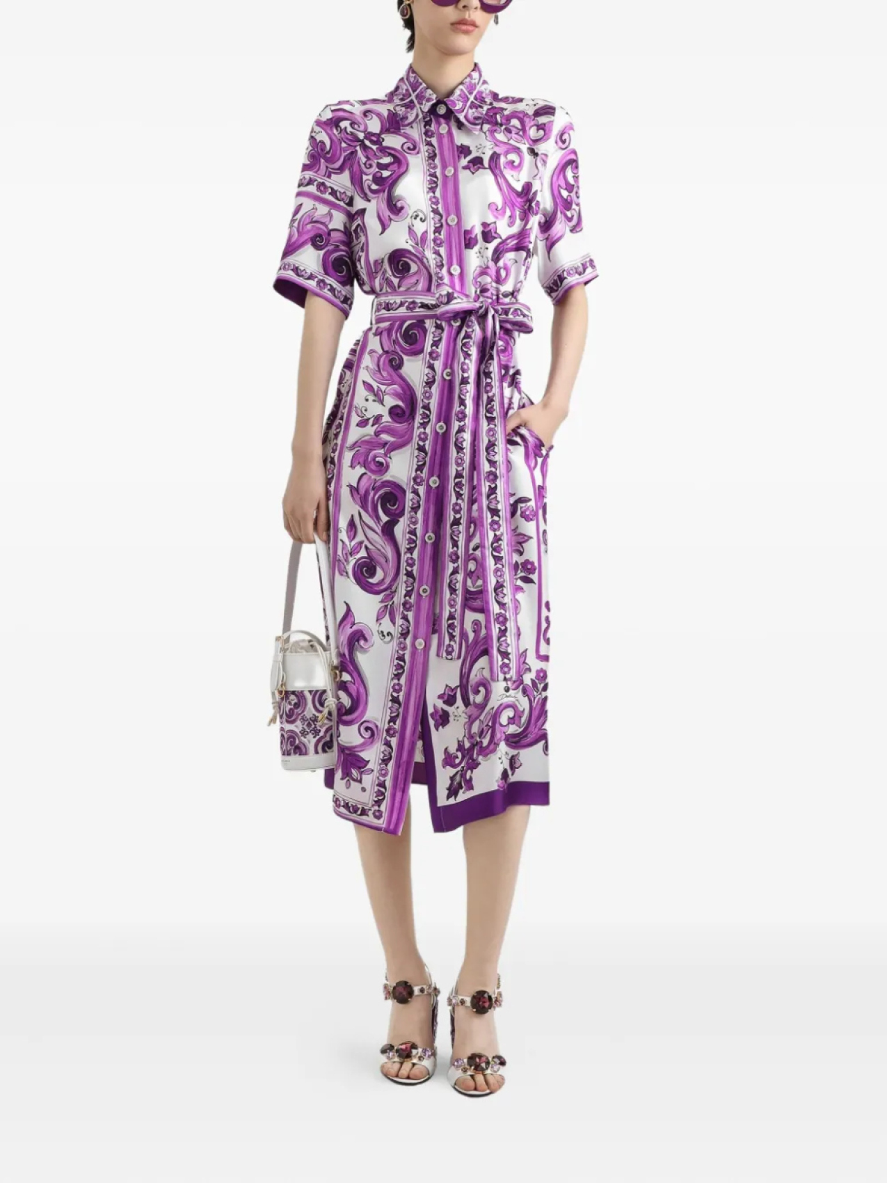 Dolce & Gabbana платье миди с принтом Majolica, белый