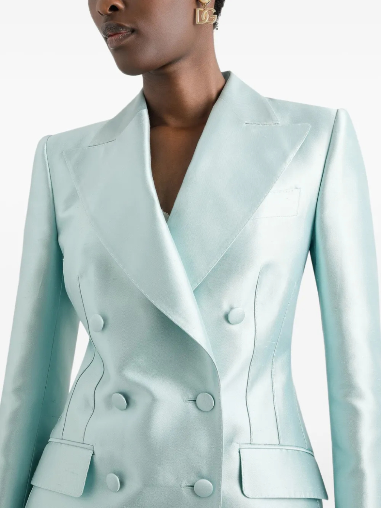 Двубортный атласный блейзер Dolce & Gabbana, синий 380 975₽